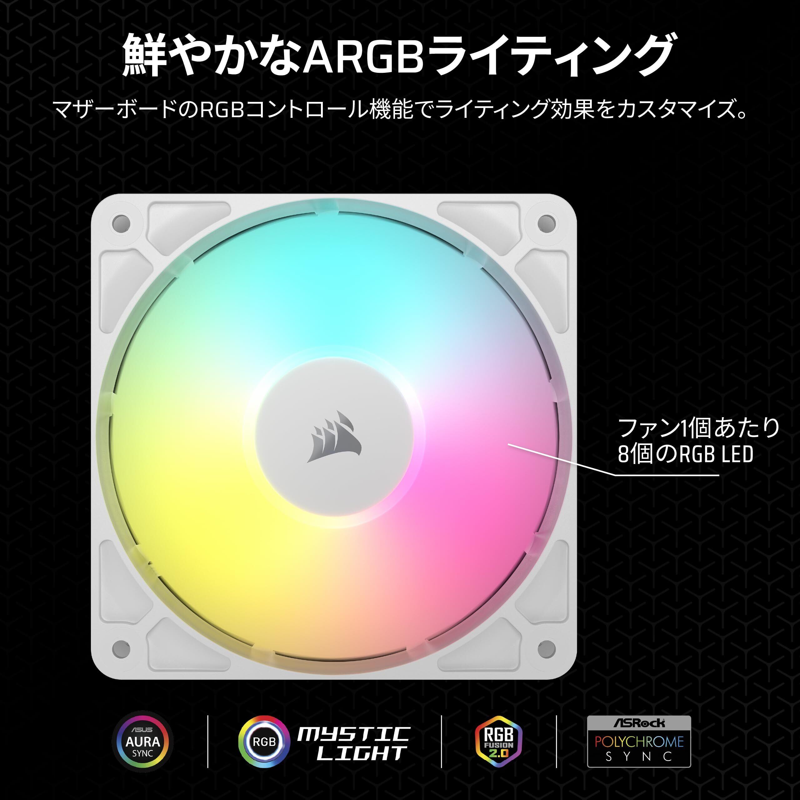 CORSAIR RS120 ARGB PWM 120mm PCケースファン デイジーチェーン対応 トリプルパック ホワイト CO-9050185-WW