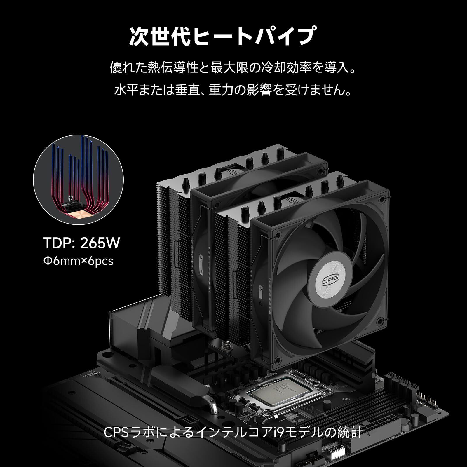 PCCOOLER CPS RT620 デュアルタワー空冷CPUクーラー|6本6mmヒートパイプ/265W TDP/PWMファン(500-2200rpm/静圧3.28mmH₂O/風量73.32CFM)|Intel LGA115X/1200/1700/1851 & AMD AM4/AM5対応 BK ブラック