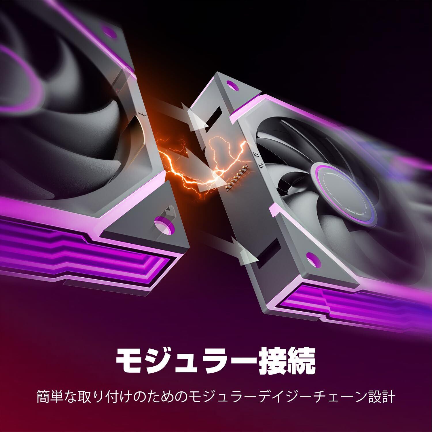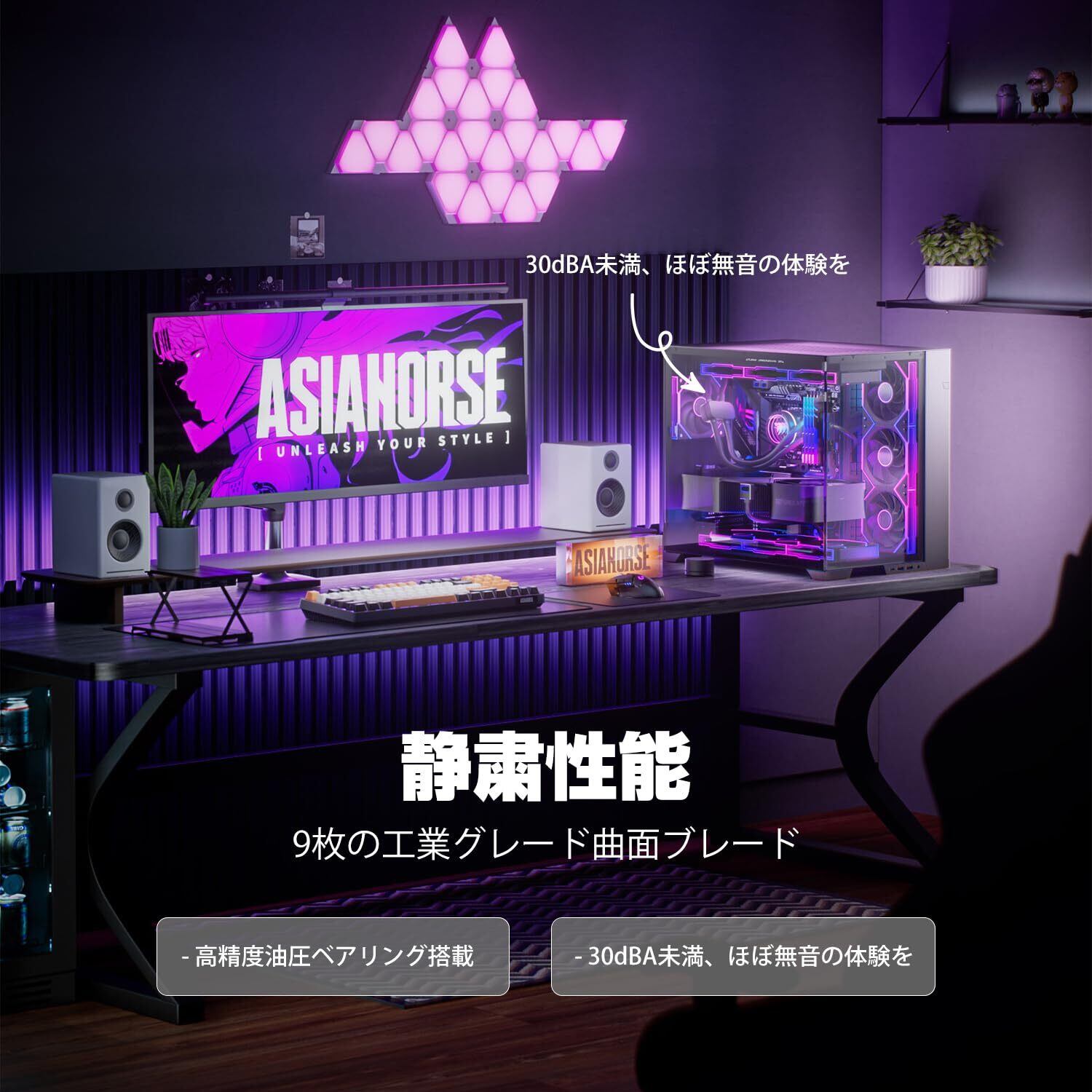 [仕様]: モデル:NyotaUltra-黒。数量:3本。サイズ:120*120*2.5。正向(排気)。デイジーチェーンファン。回転数:900-1850 RPM/Min。ノイズ:6-30 dB(A)。風量:71 CFM 。風圧:2.6mmH2O。ベアリングのタイプ:ハイドロダイナミックベアリング。寿命:50000時間以上。240/360mmのCPU水冷高さに対応。