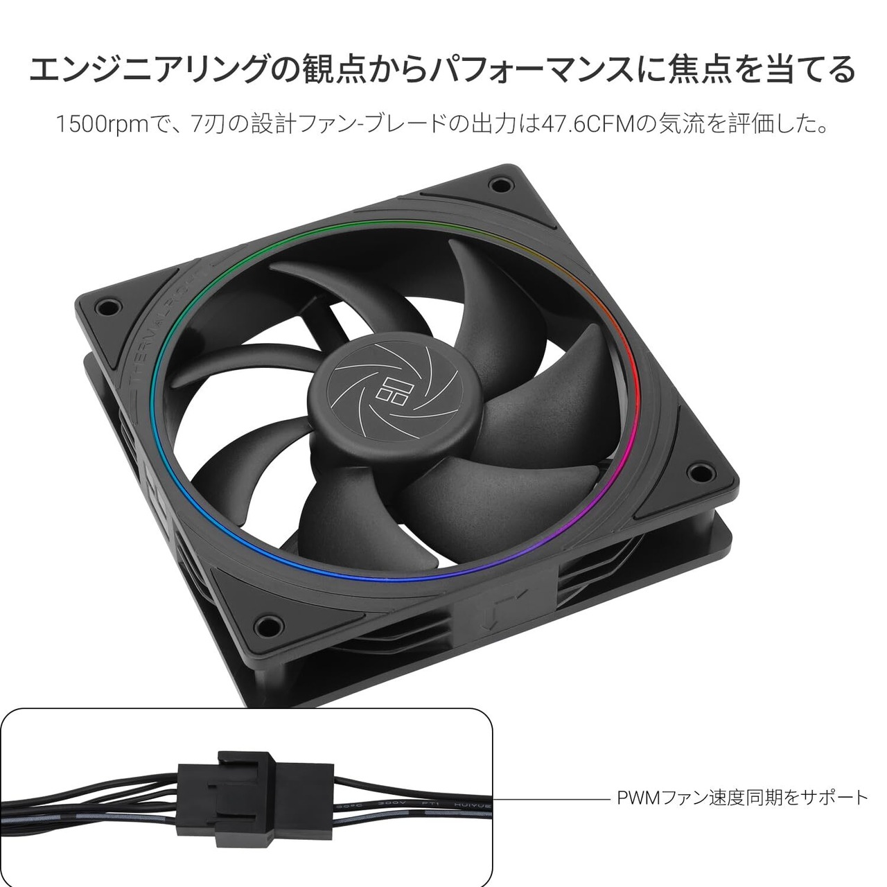 Thermalright TL-S12 CPUファンハウジング冷却器PWMファン、絞り光エフェクト、ARGB絞り付き4ピンPWMコネクタコンピュータファン、1500 RPM速度PC冷却ファン(120 mm、3ファン)