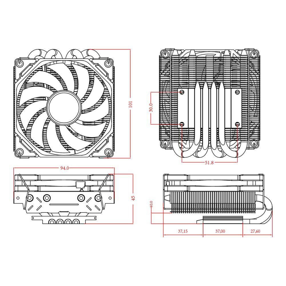 サイズ: W94×D101×H45mm (リテンションを除く)、カラー: ブラック (ファン、ヒートシンク)、RoHS指令準拠 (10物質)
