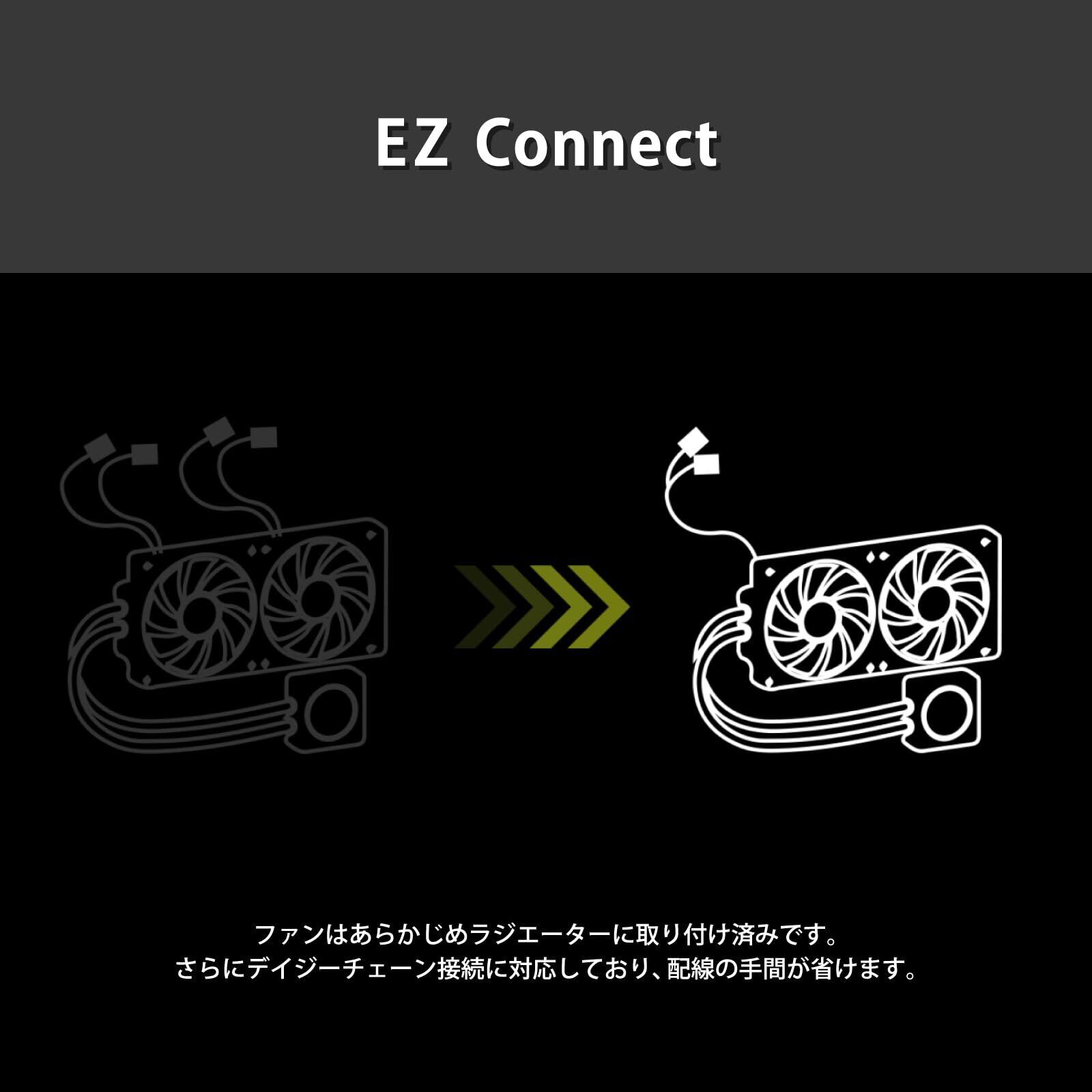 デイジーチェーン対応の冷却ファンがあらかじめラジエーターに取り付けられており、組立と配線の手間を軽減します。