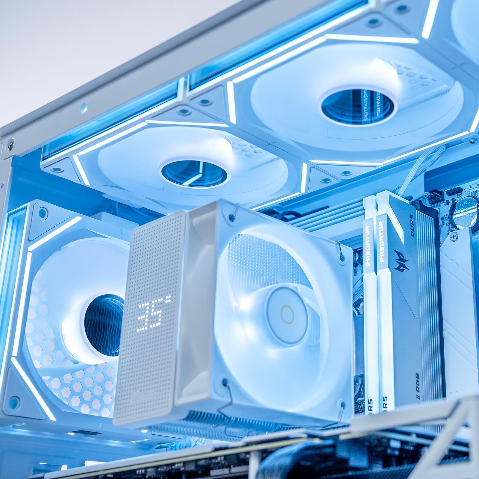 【低騒音性能】両側コーナーのゴムパッドが高速回転時の共振を低減し、安定した静粛性を確保。モジュラー設計によりケーブル管理とデイジーチェーン接続が容易で、最小限の騒音で最高の冷却性能を確保。