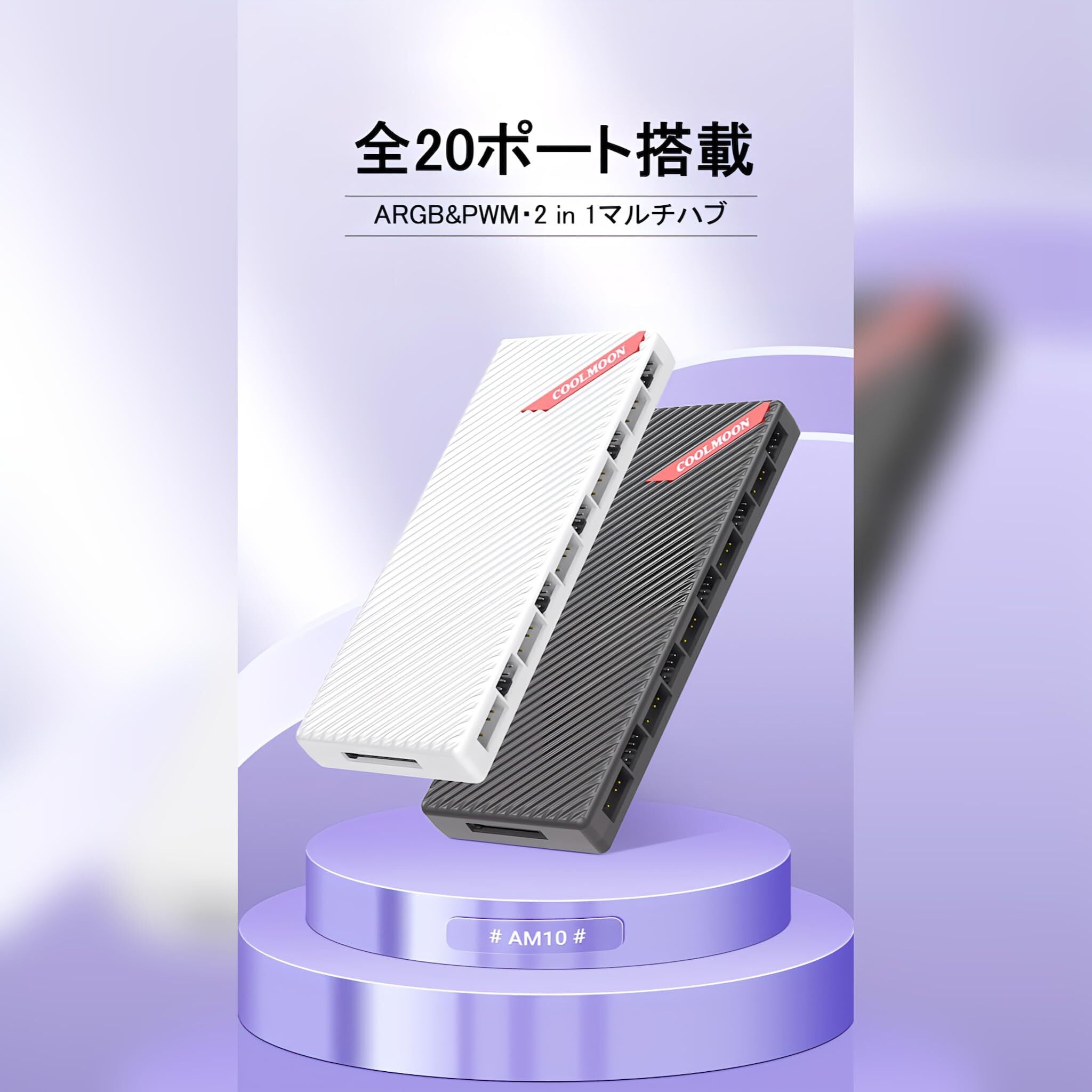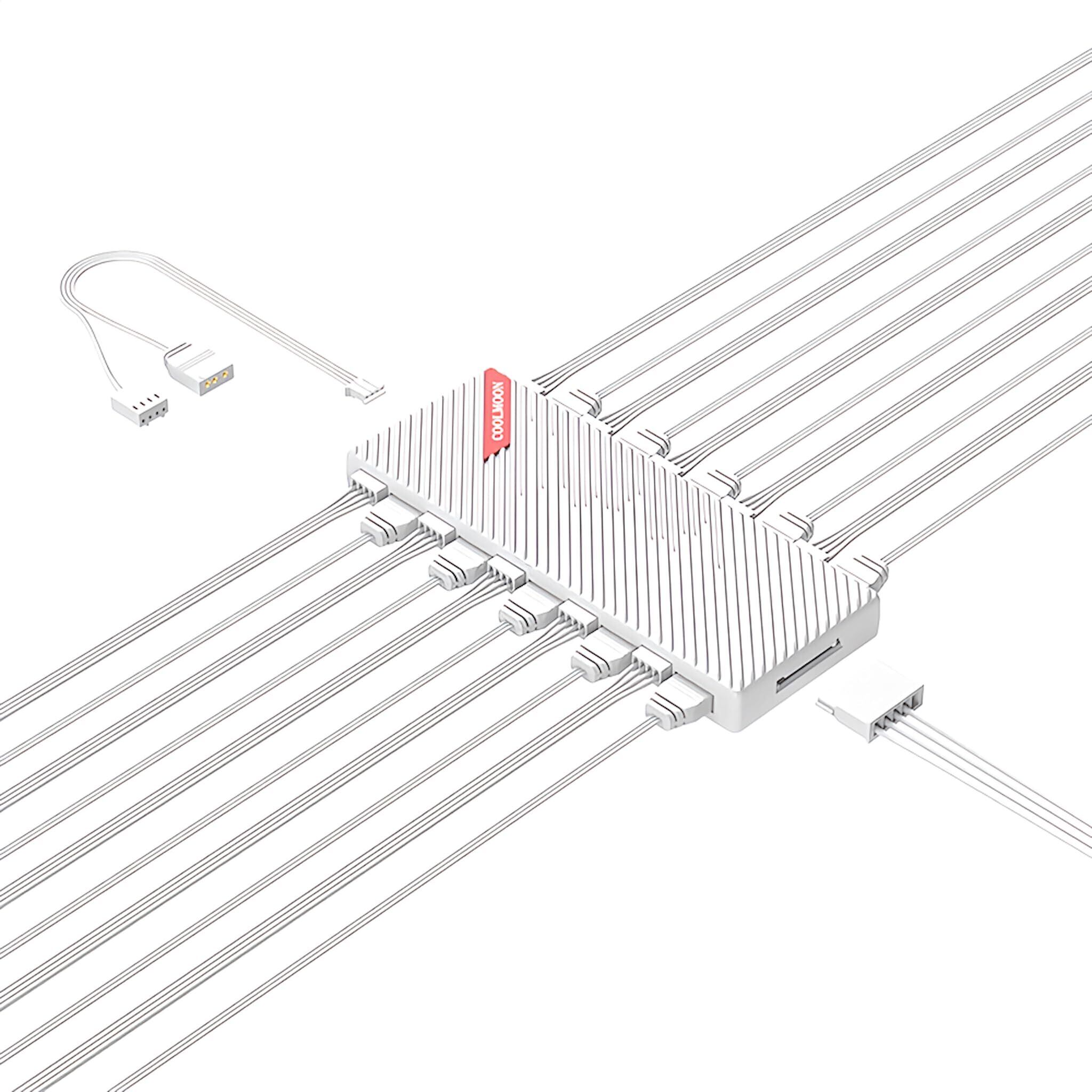【スモールラボ】COOLMOON 20ポート ファンハブ コントローラー ARGB 5V 3PIN 10ポート/12V 4pin10ポート マザーボード制御対応 ファン回転速度制御対応 (ホワイト)