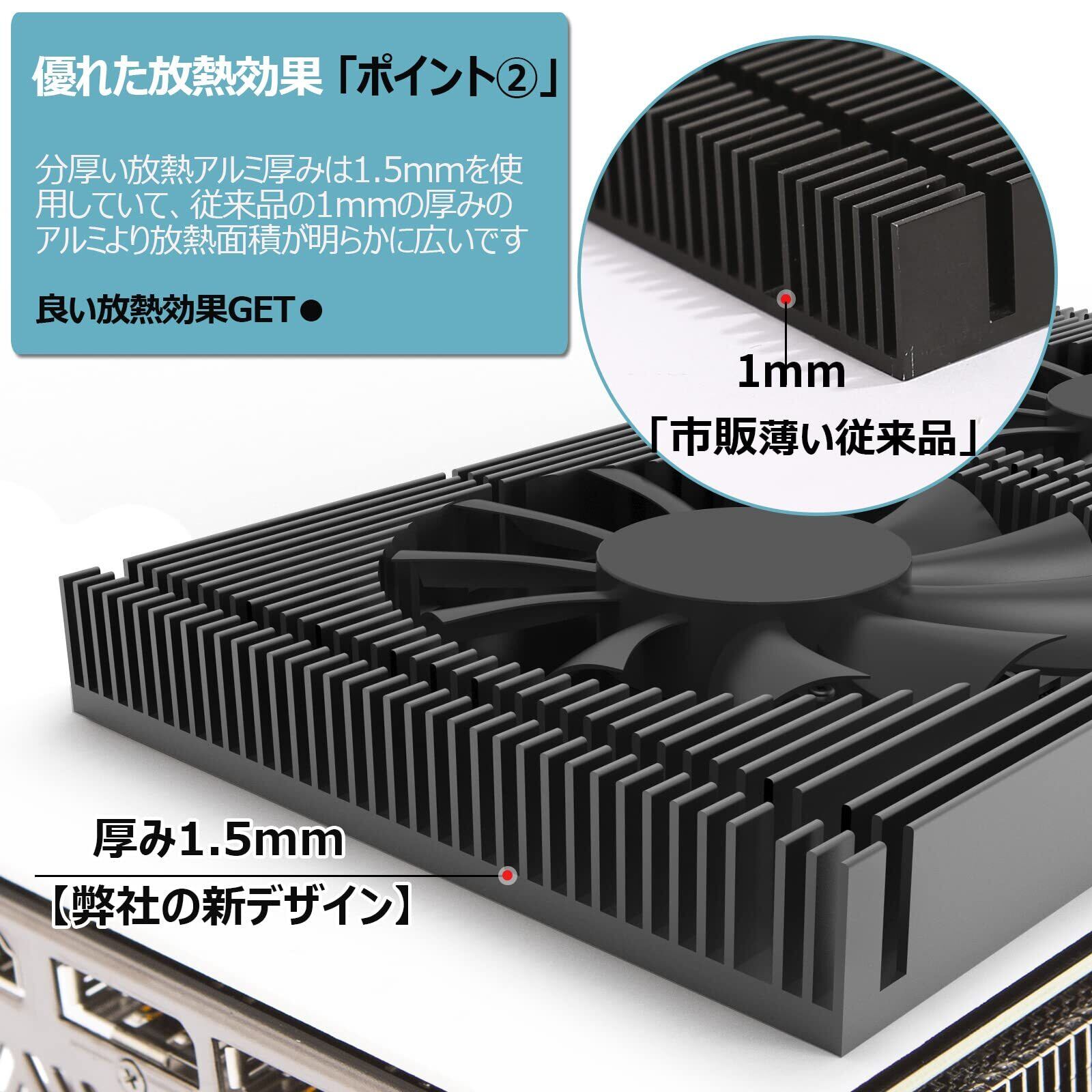 7cmファンのデザインのほうが業界の従来の5CMファンより大風量で、アルミ放熱部分の厚みは1.5cmまでアップしており、放熱効果が優れています。