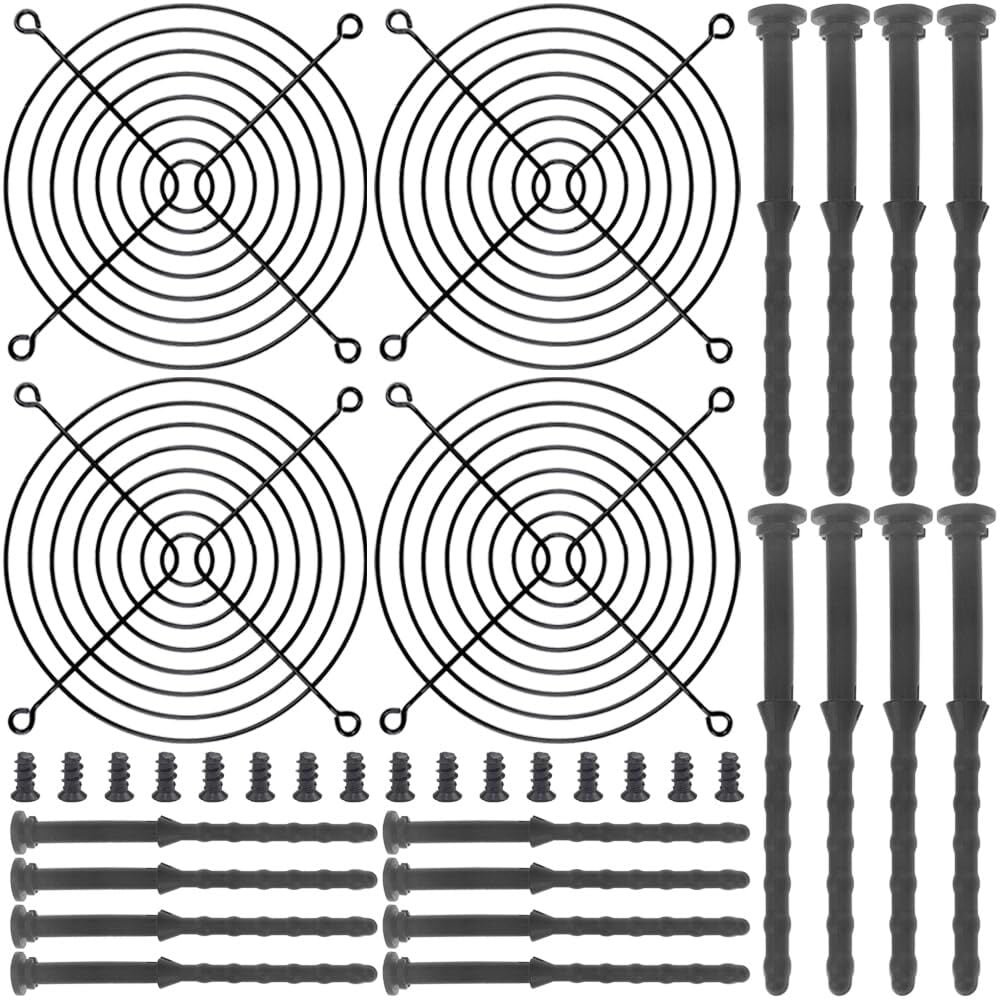 120mmブラックフィンガーグリル、PCコンピュータ冷却ファングリル120mmガード保護カバー、ネジ付き、ゴム製PCファンネジ(4パック)