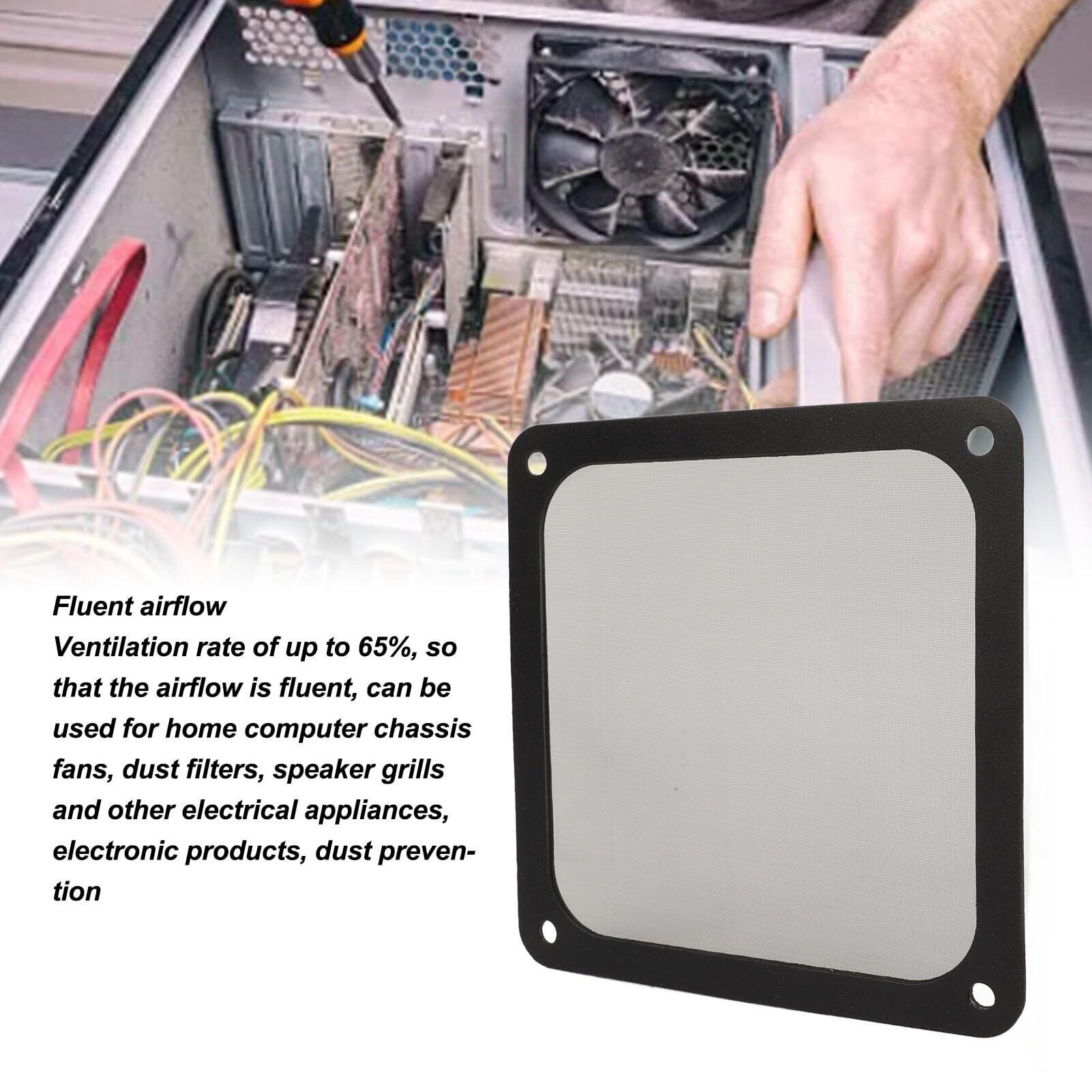 流暢なエアフロー:換気率は最大65%で、エアフローが流暢になり、家庭用コンピュータケースファン、ダストフィルター、スピーカーグリル、その他の電化製品、電子製品の防塵に使用できます。