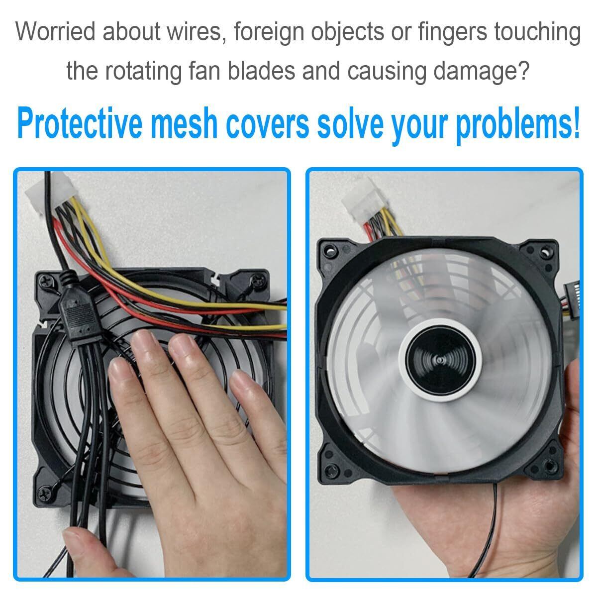 用途: PCやその他のさまざまな用途(3Dプリンターや家庭換気など)のファンの保護に最適です - ファンに指を入れたり、ケーブルがファンにぶら下がったりするリスクを軽減します。