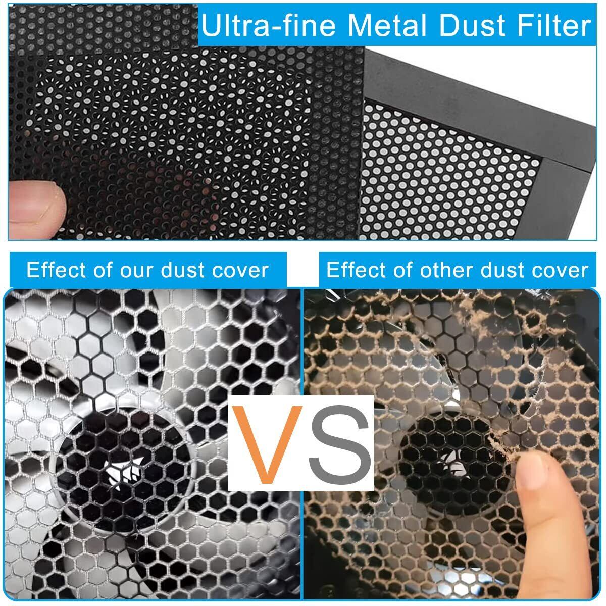 超微細メッシュカバー:超微細メッシュフィルターが優れた除塵性能を発揮します。 ほこりの蓄積によるコンピューターのファン速度の低下を効果的に回避します。これにより、CPU が過熱し、コンピューターがスムーズに動作します。