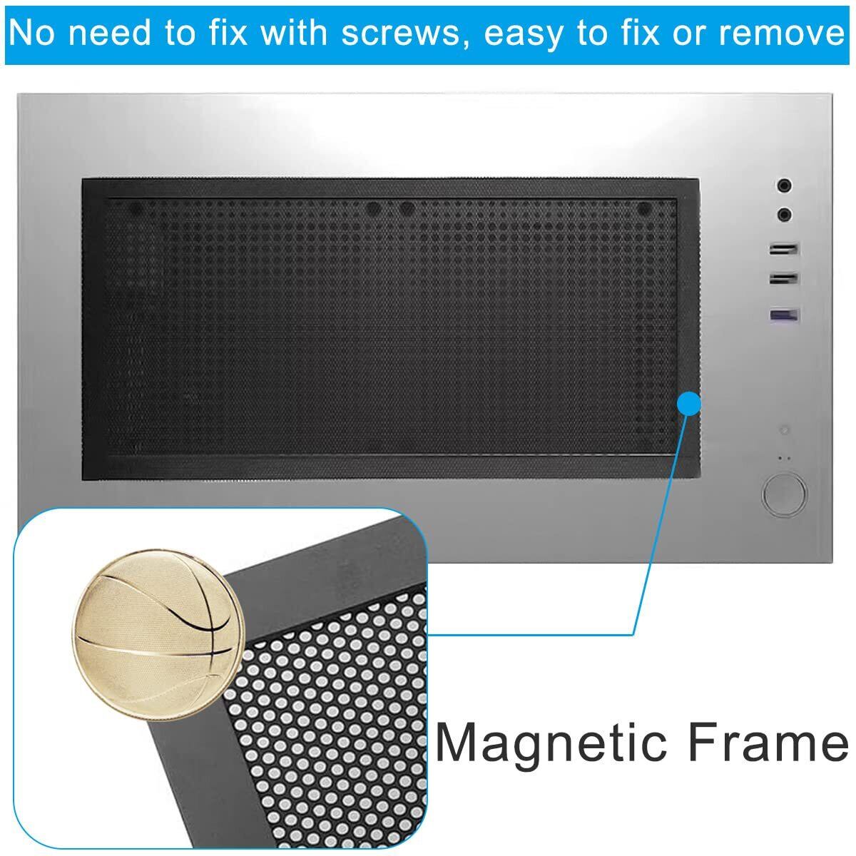 マグネットフレーム:ダストカバーのフレームはマグネットです。 ダスト カバーは、工具やネジを使用せずに金属シャーシのどこにでも簡単に配置できます。 細かいメッシュグリッドは磁気ではありません。