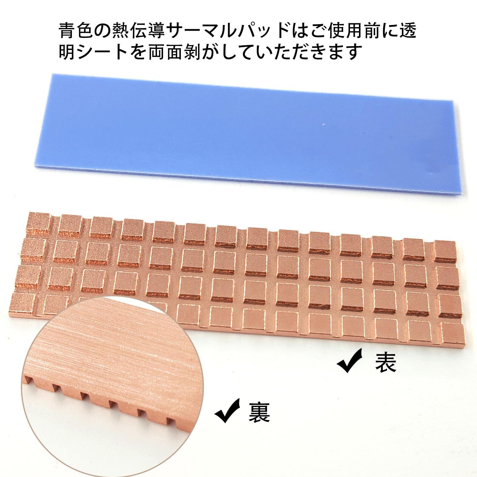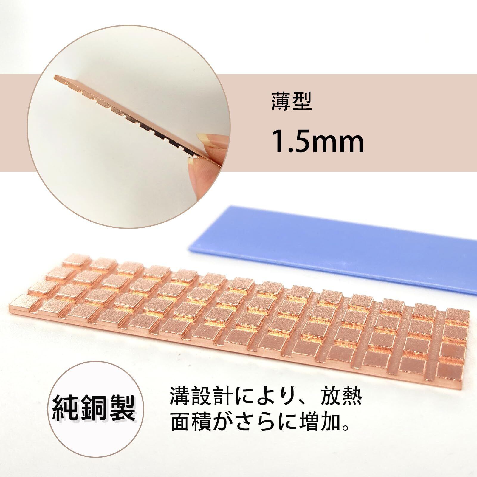 銅製 M.2 SSD ヒートシンク 1.5mm 薄型 熱暴走対策 2280 M2 SSD PS5 ノートPC 用 ヒートシンク サーマルパッド付き 67*18*1.5mm