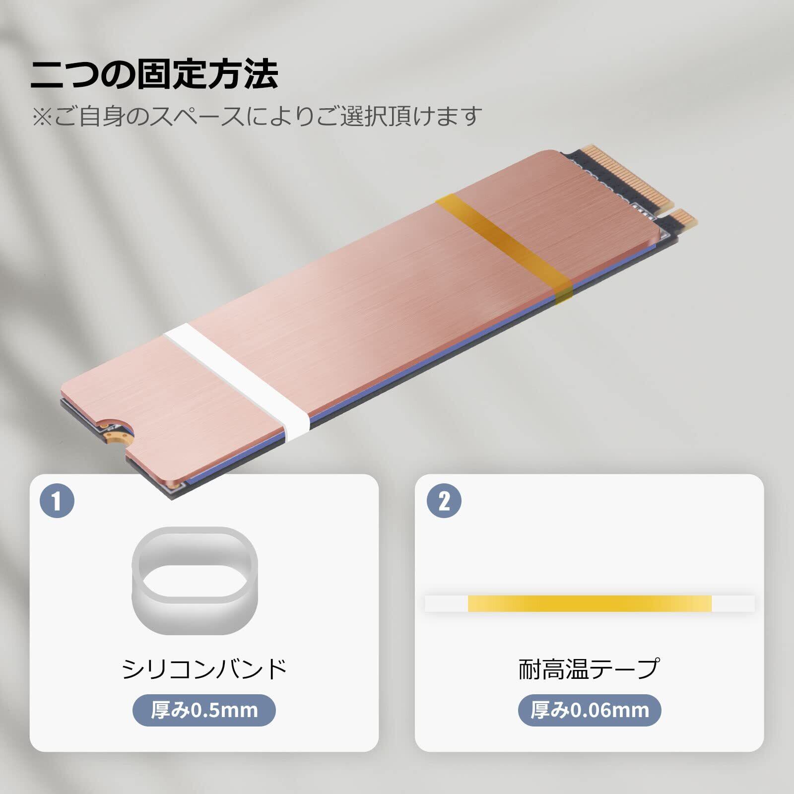 【簡単に取り付け】厚さ0.5mm/1mm 2種類のサーマルパッド、また固定用にシリコンバンド、耐高温テープ 2種類もあり、実際のスペースにより、ご選択できます。