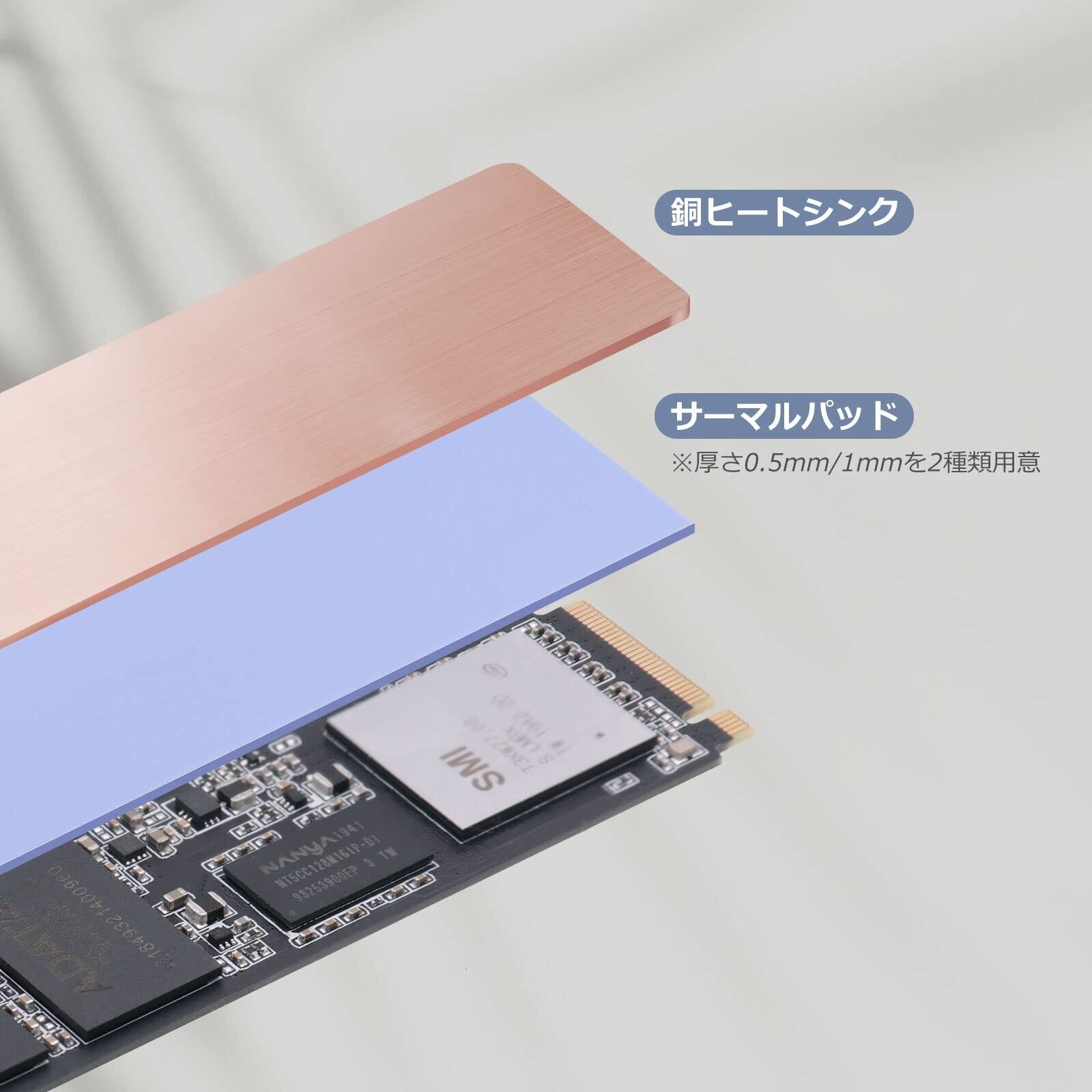 【高品質銅】100%銅材質、厚さ1mmコンパクトな銅板ですが、アルミ制よりよい放熱効果を持ちますので、高性能SSDの熱暴走としてよい対策。