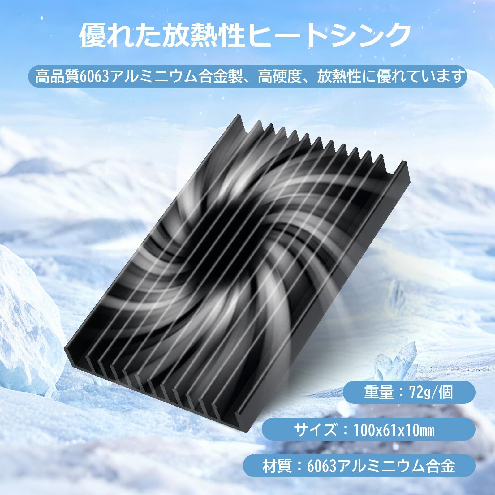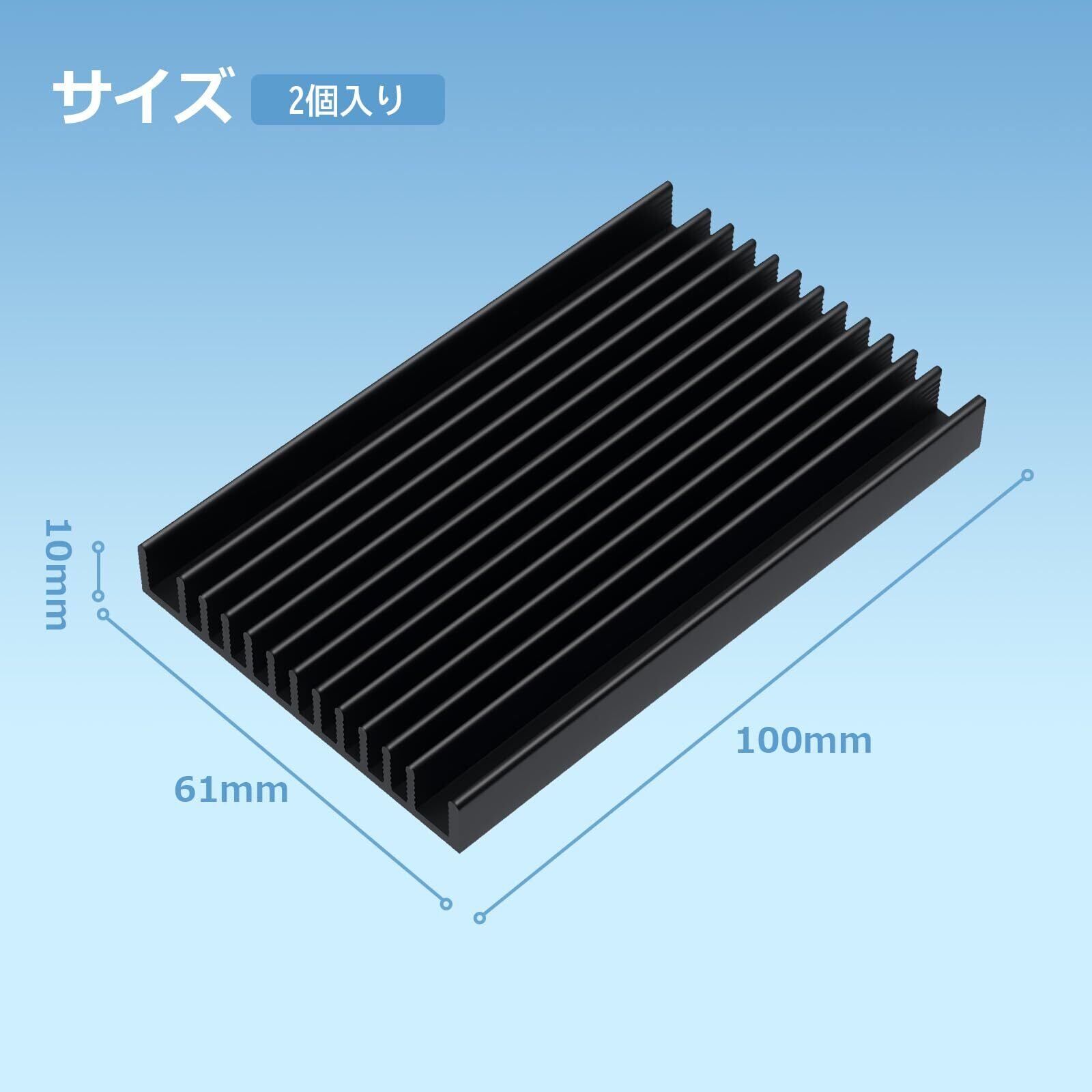 ヒートシンク 大型 2個セット 100×61×10mm 冷却 フィン アルミニウム 2種類の導熱接着シート付き 電子機器の熱暴走対策