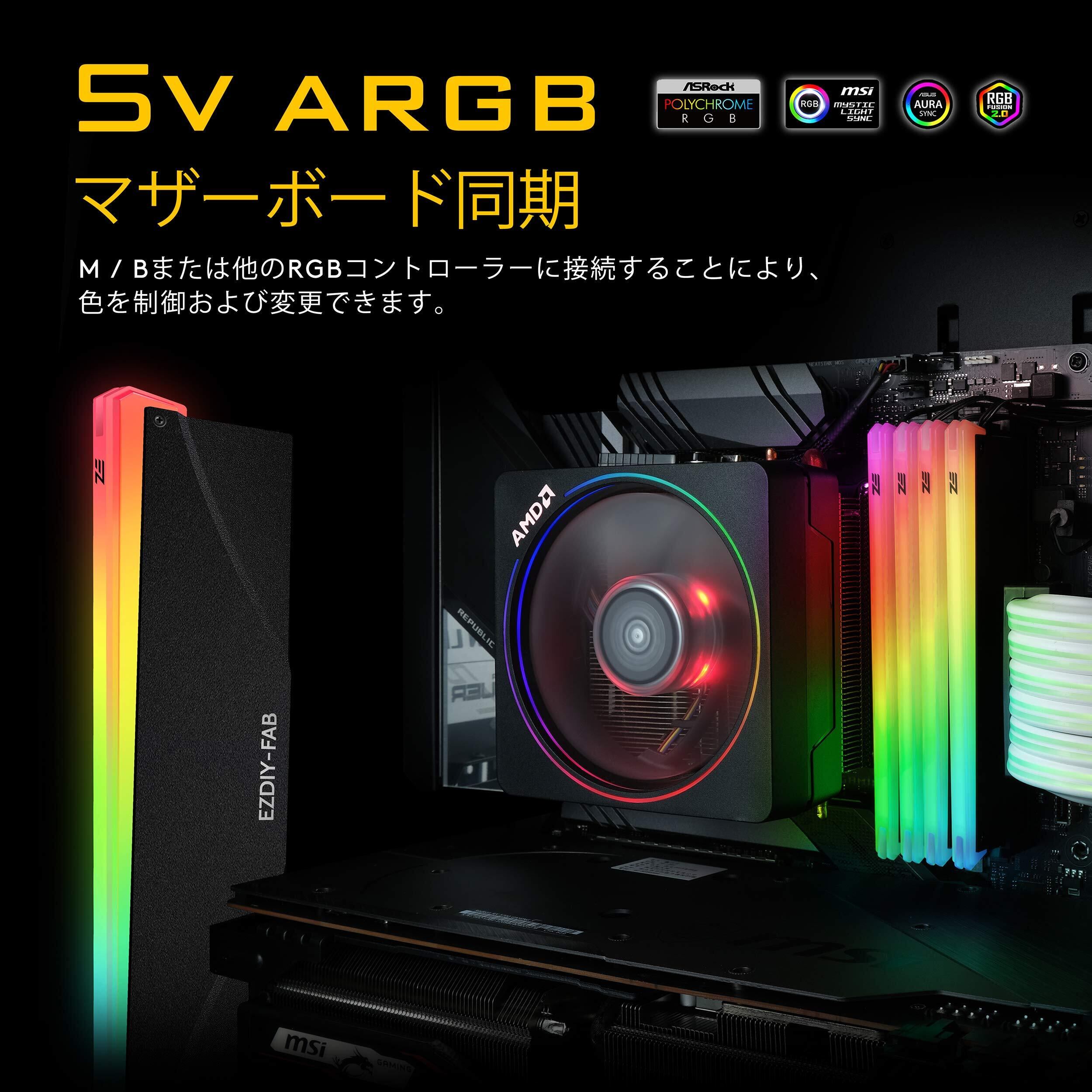 EZDIY-FAB 新しいバージョン RGB RAM 冷却 メモリヒートシンク アドレサブル RGB LED機能搭載 (デスクトップ オーバークロックPC用 メモリ)-黒い 2本1セット [PI061]