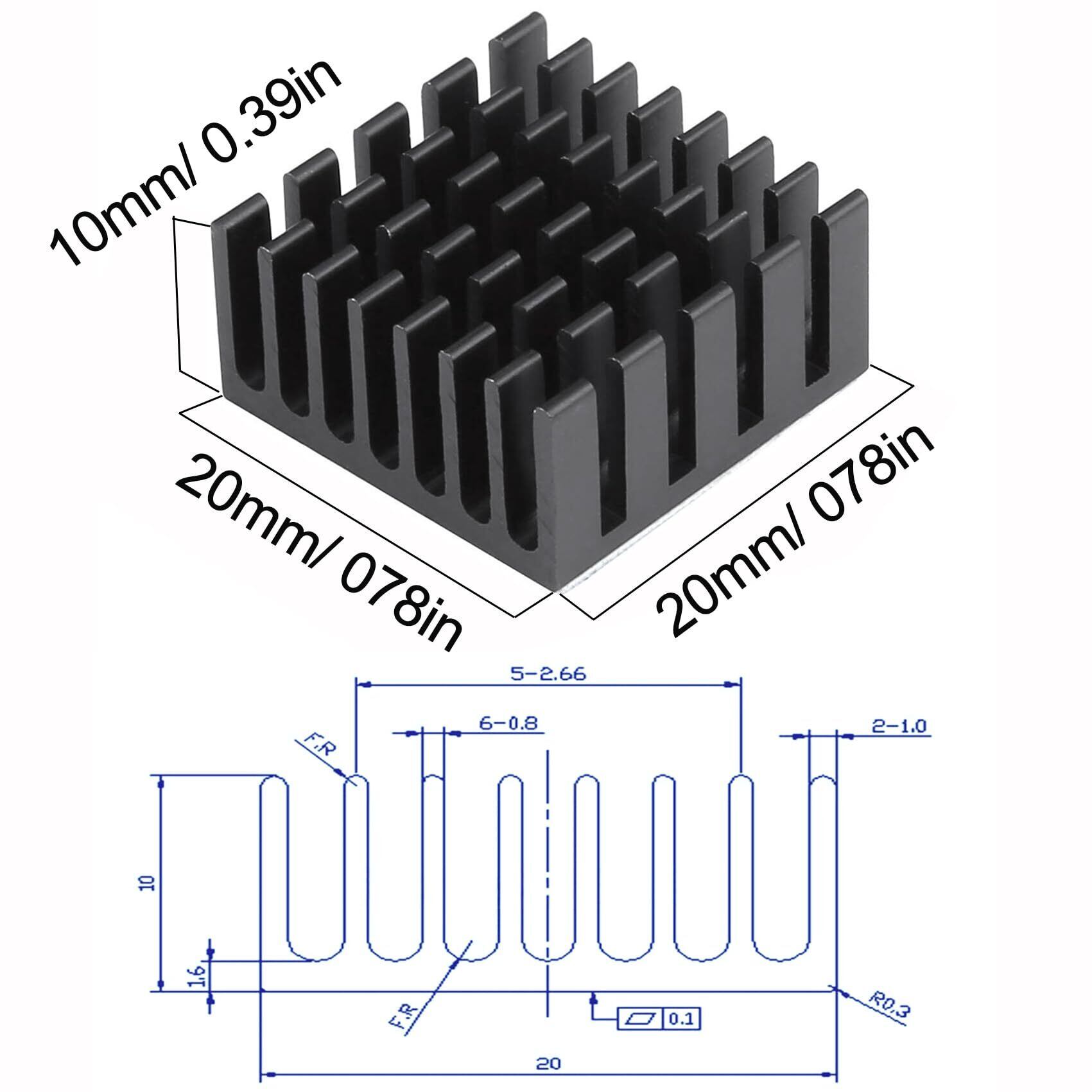 ヒートシンク 熱伝導性両面テープ付き 熱暴走対策 20mm X 20mm X 10mm 10個入り 冷却フィン アルミニウム製 放熱板 ファイア テレビ DIYキット ICチップ MOSFET 回路基板 ハイパワーLEDアンプに適用