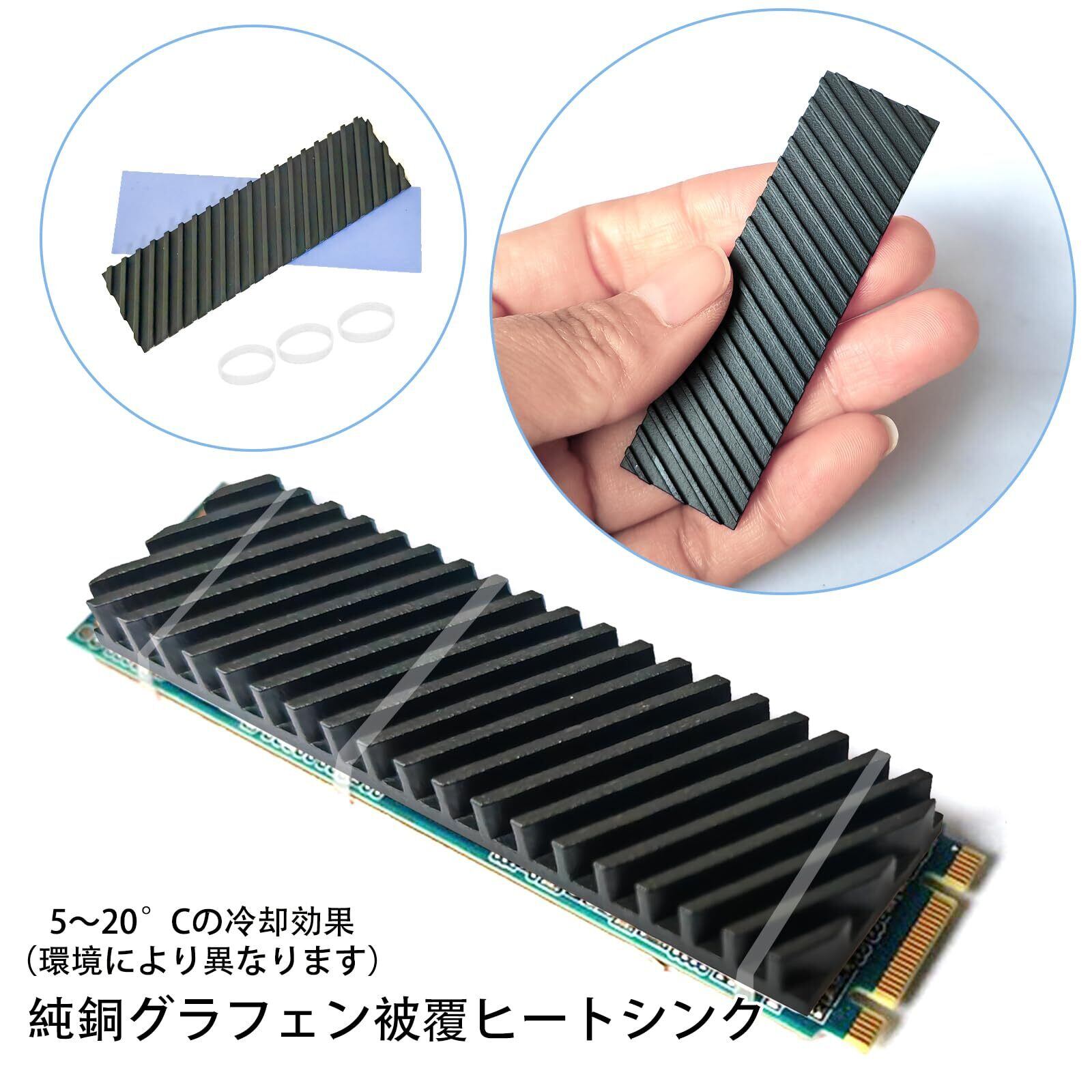 銅製 M.2 SSD ヒートシンク 3mm 薄型 グラフェン被覆 熱暴走対策 2280 M2 SSD PS5 ノートPC 用 ヒートシンク サーマルパッド付き 70*20*3mm