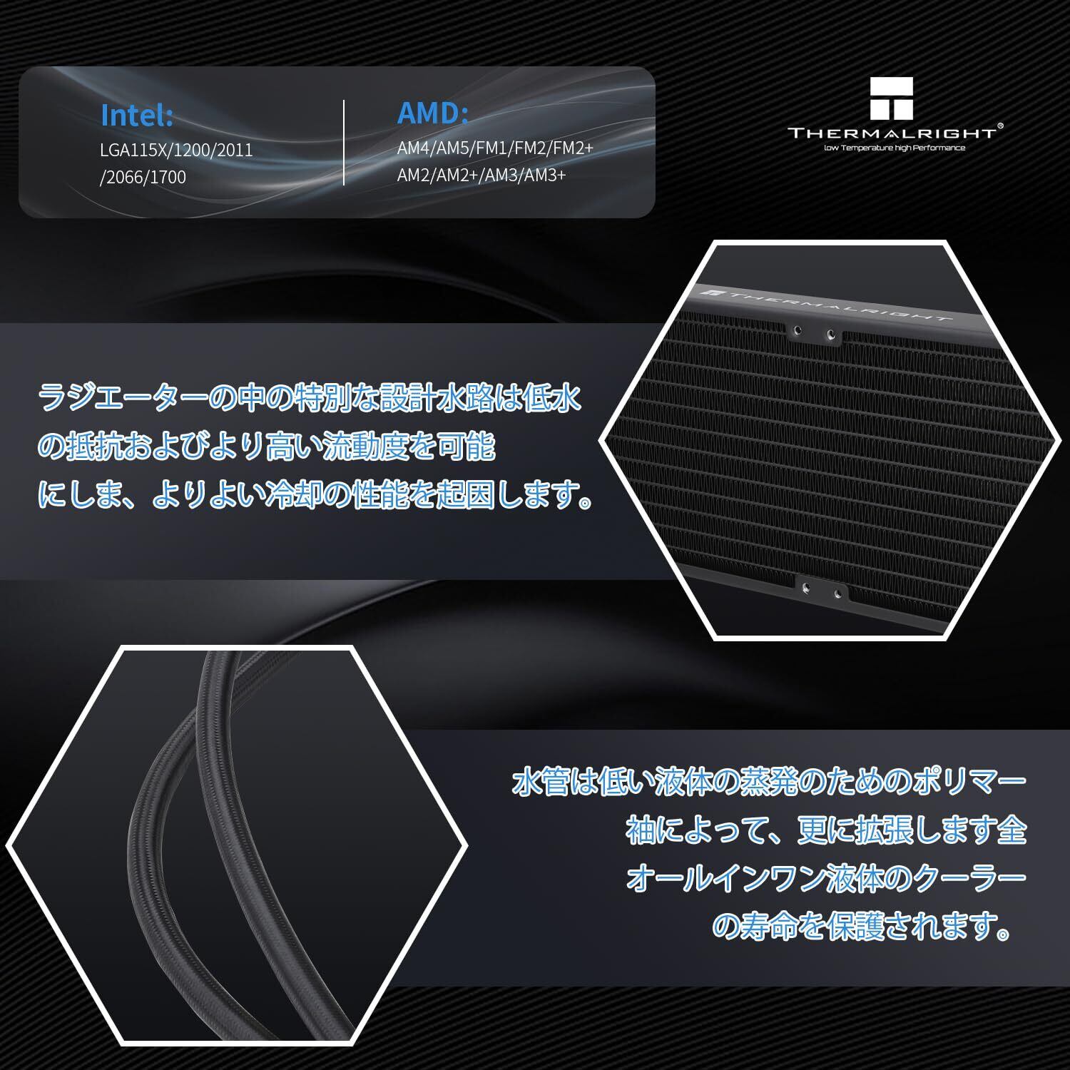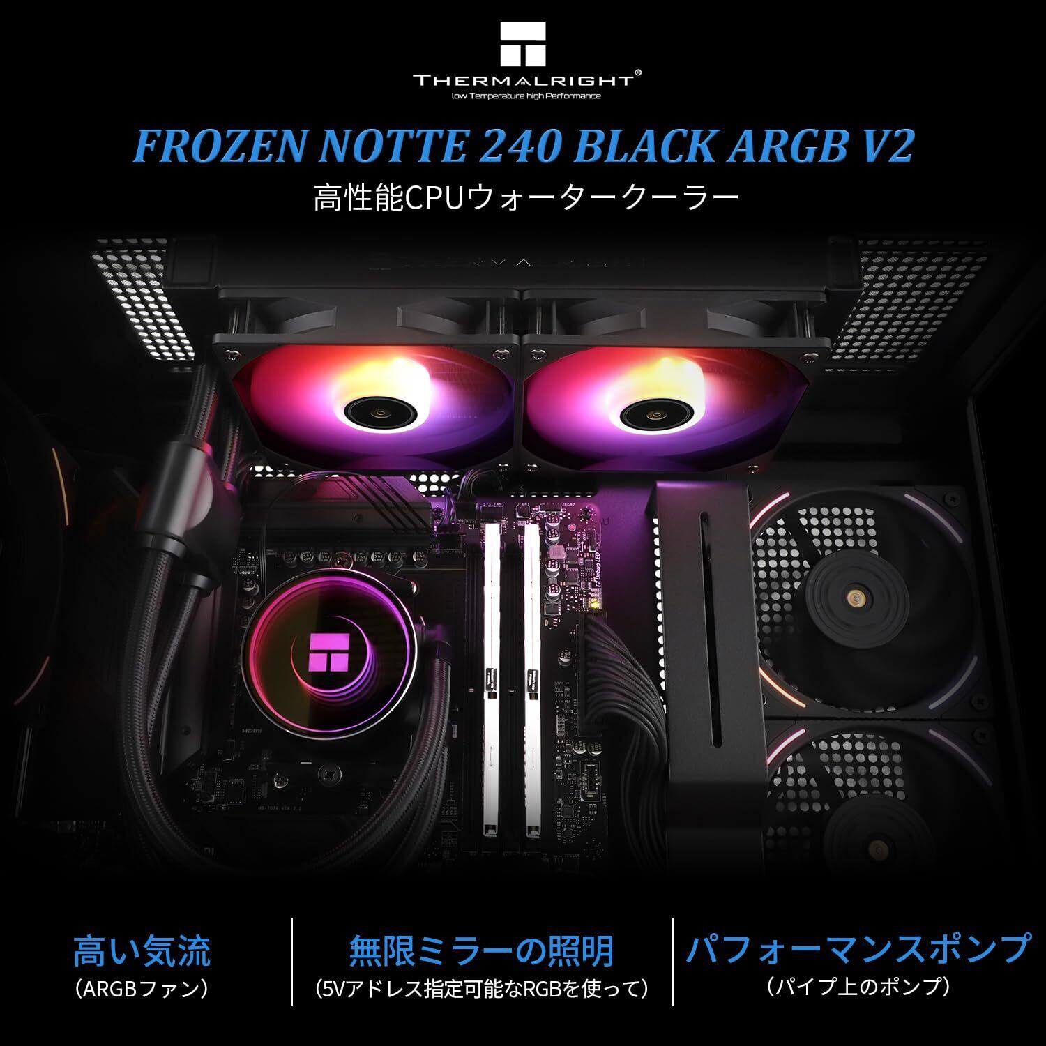 Thermalright Frozen Notte 240 BLACK ARGB 水冷CPUクーラー、240mmブラックCPUクーラー仕様、ダブルPWMファン、S-FDB V2ベアリング、AMD/AM4/AM5,Intel LGA 1700/1851/1150/1151/1200/2011 に対応します