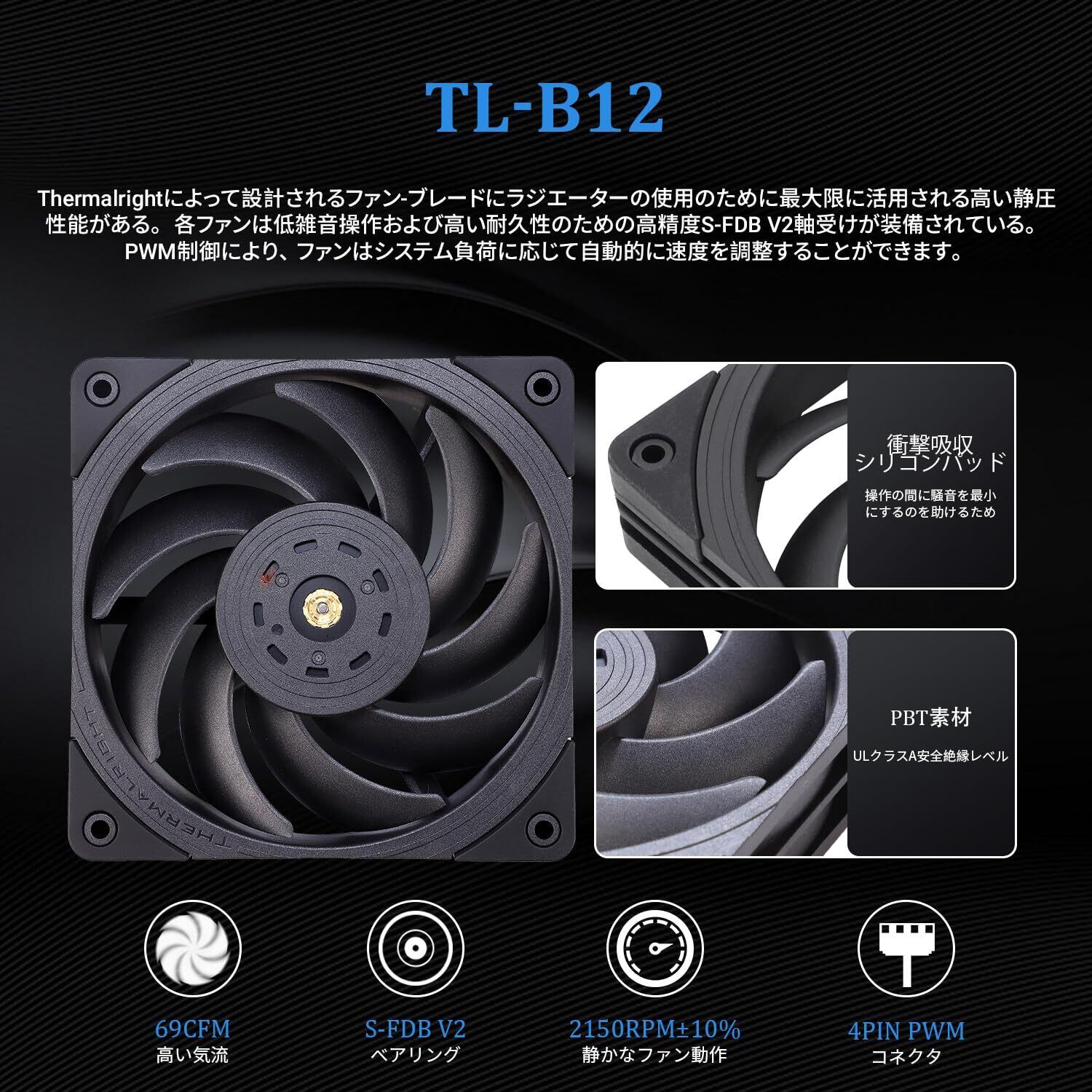 【ダブルPWMファン】TL-B12バランスファンx 2、最大2150RPM±10%の速度、サイズ120 * 120 * 25mm、ノイズ≤28.1DBA、インターフェース:4ピンPWM、空気圧:2.87mmH2O(最大)、風量:69CFM(最大)、PWM機能とバランス補正機能付きファン、PWM缶PWMはCPU温度に応じて速度を自動的に調整し、強力な風量と低ノイズを提供します(注: ファンの赤い粘土の点は粘土のバランスをとっています、スナップオフしないでください)