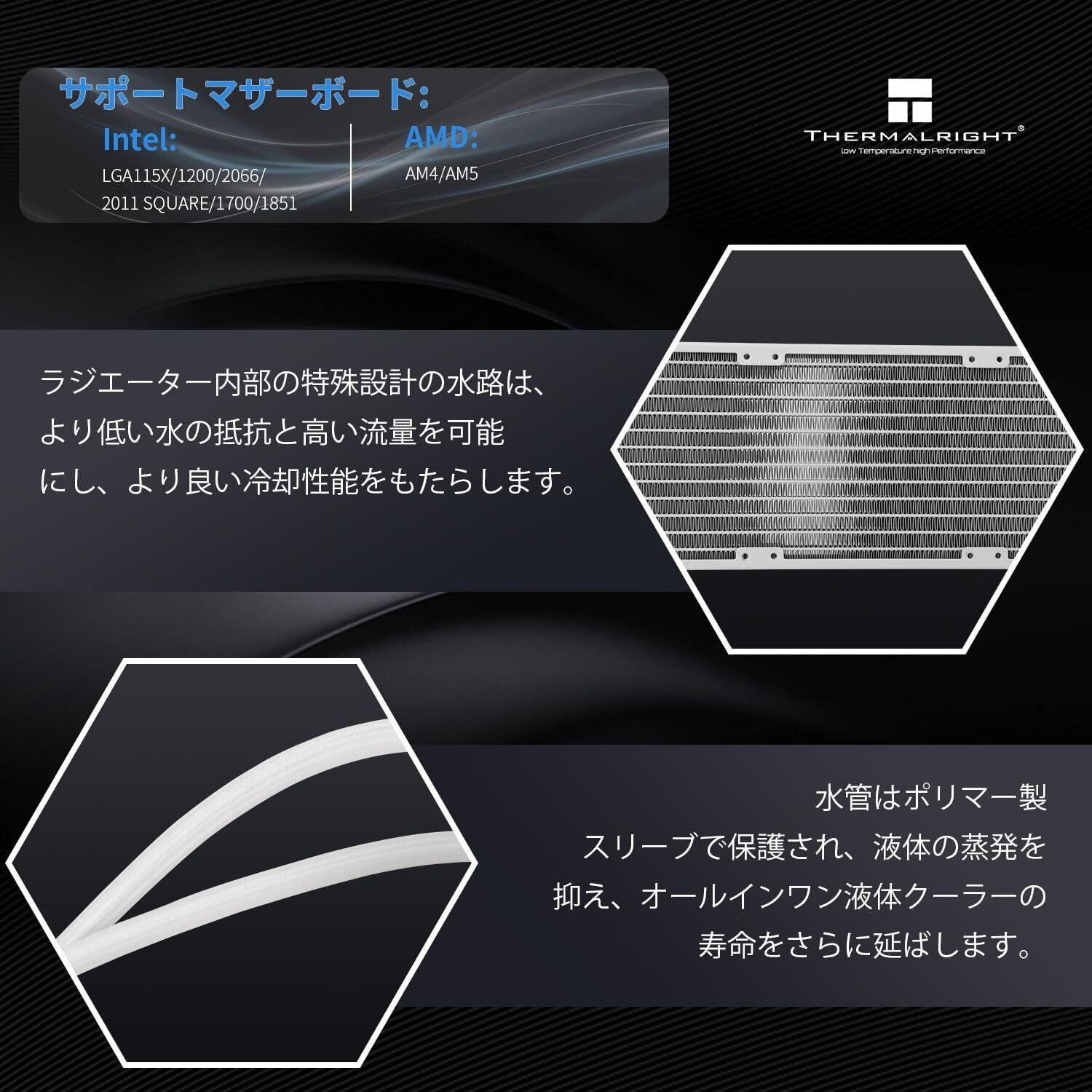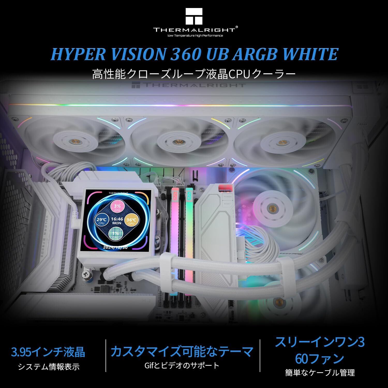 Thermalright Hyper Vision 360 UB ARGB ホワイト水冷CPUクーラー、360mm仕様水冷、3 つの高性能ファンを一列に並べ、2150RPM速度、3.95インチ磁気大画面-コールドヘッド、480x480解像度画質、AMD AM4/AM5、Intel LGA1851/1700/1200/115X/2011に対応