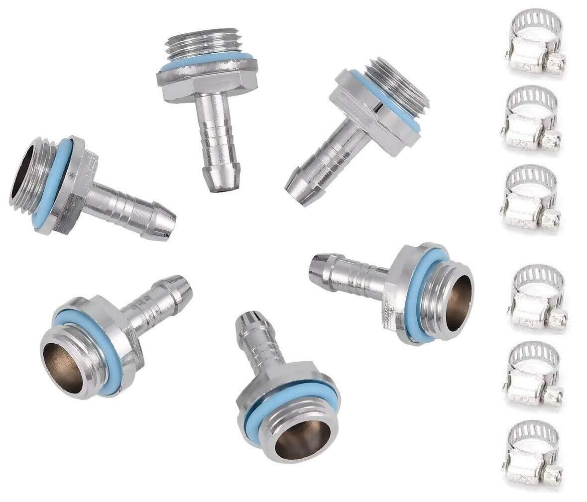 NEYORIKA 水冷ツータッチ継手 水冷フィッティング G1/4 チューブコネクタ ステンレスバンド付 6個 (9mm)
