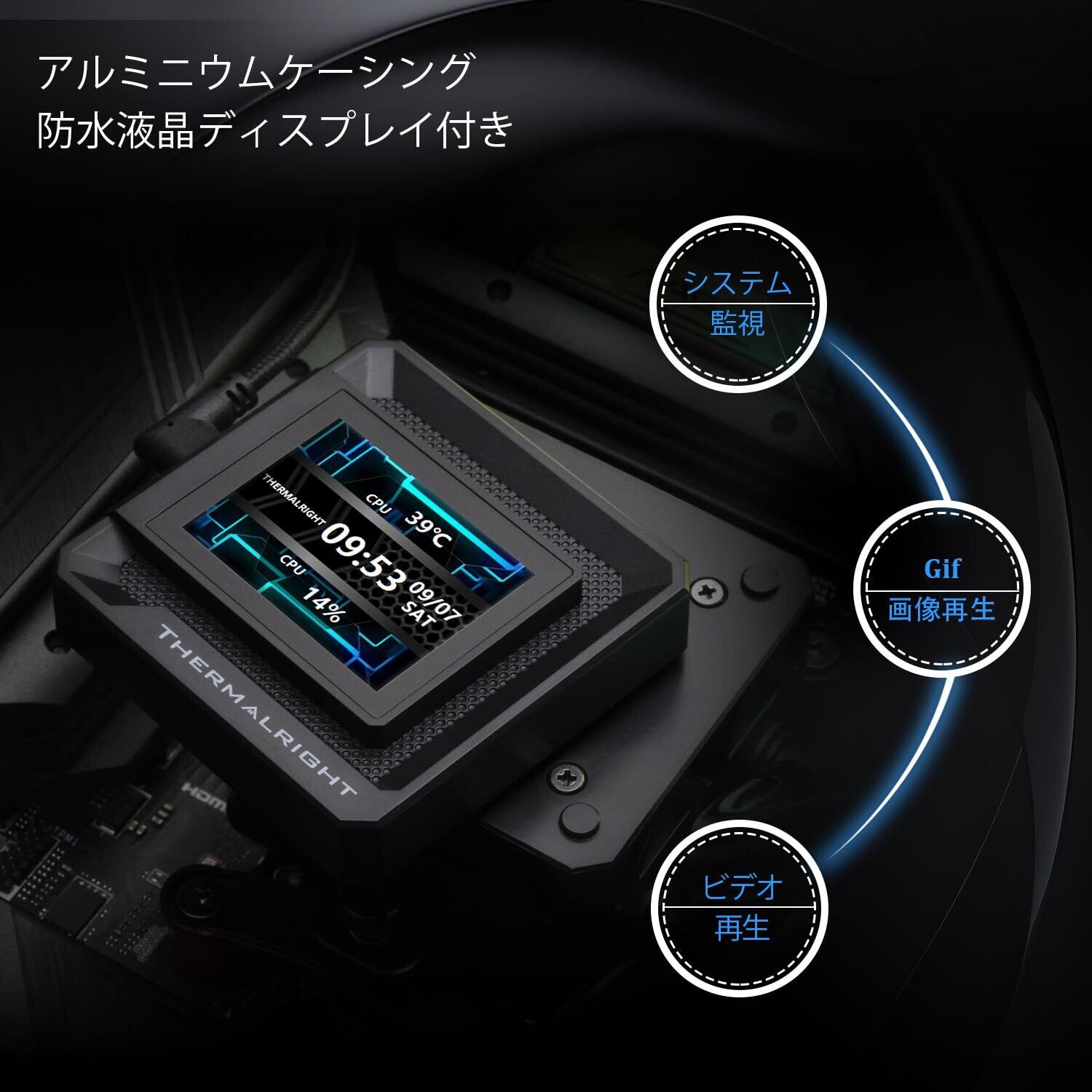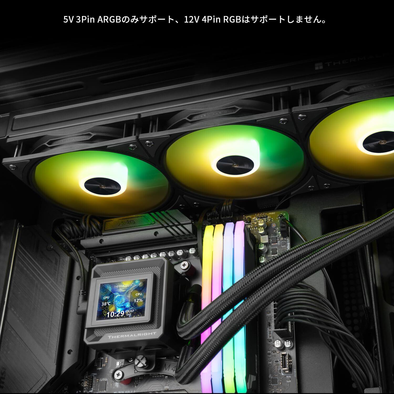 [LCD画面に関するソフトウェアノート] LCDスクリーンの電源供給とデータ通信伝送は、マザーボードの9PIN USBインターフェースによって提供されますので、ソフトウェアをインストールする前に、SATA電源の完全性とマザーボードのUSB配線を確認してください。ソフトウェアは、Thermalrightの公式Webサイトからダウンロードできます。