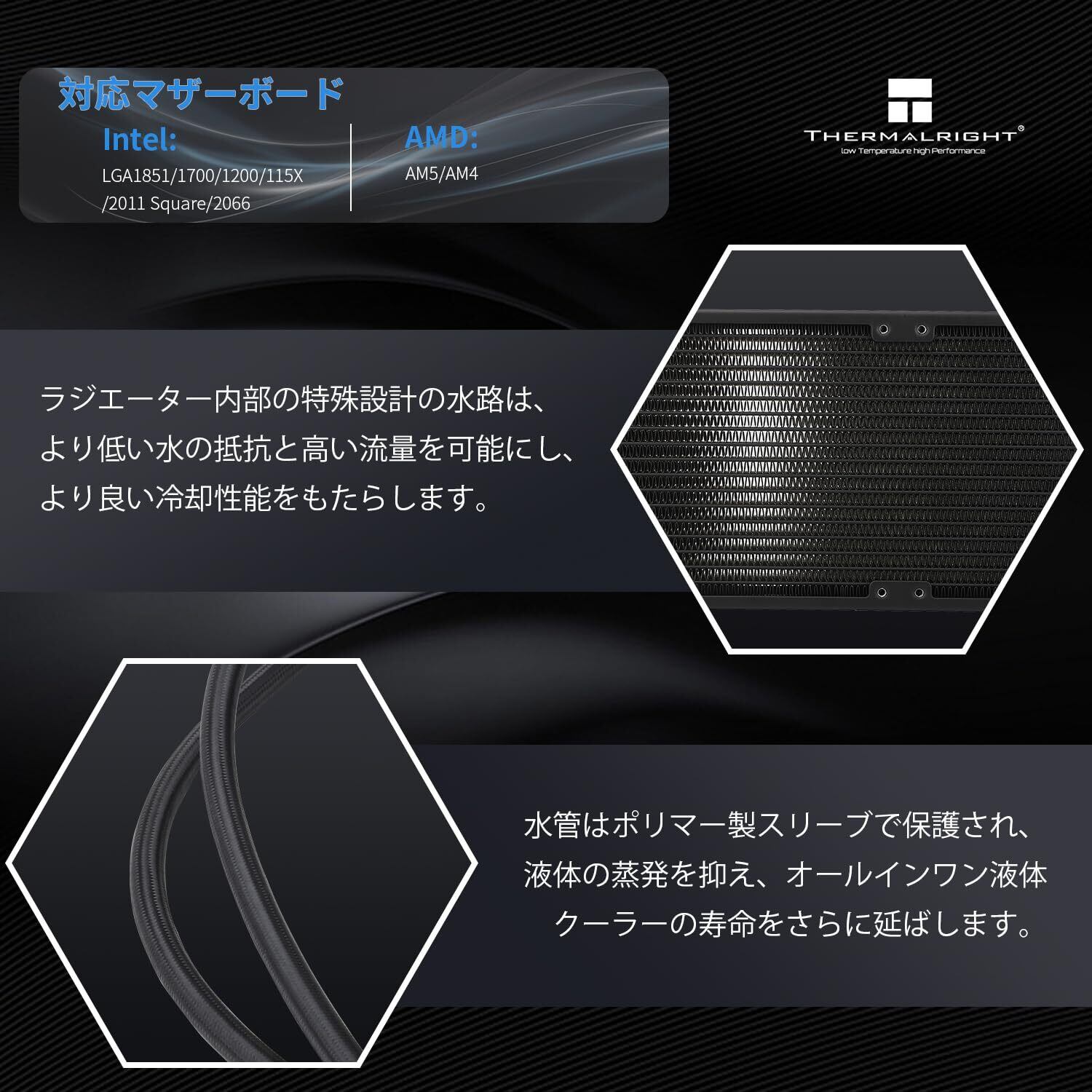 [優れた冷却の組み合わせ] CPU水冷ラジエーターは、取り外し可能なLCDスクリーンを備えたウォーターブロック、360仕様のオールブラックナノ塗装アルミフィンラジエーター、ポリマー保護水パイプ、標準の120mm PWM空気圧ファンを採用しており、高冷却、高寿命、低蒸発の統合水冷クーラーの作成に取り組んでいます。