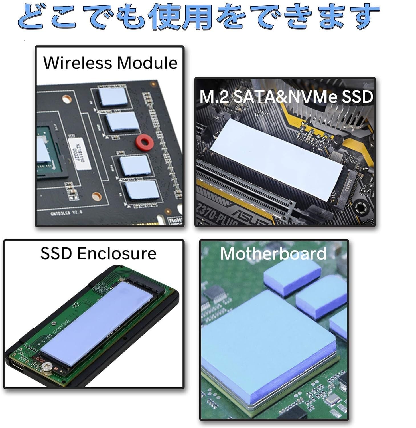 M.2 SSD、ワイヤレスモジュール、ICチップ、電源アダプター、精密機器、内部ボード、CPU、各種小型電子機器の放熱に使用できます