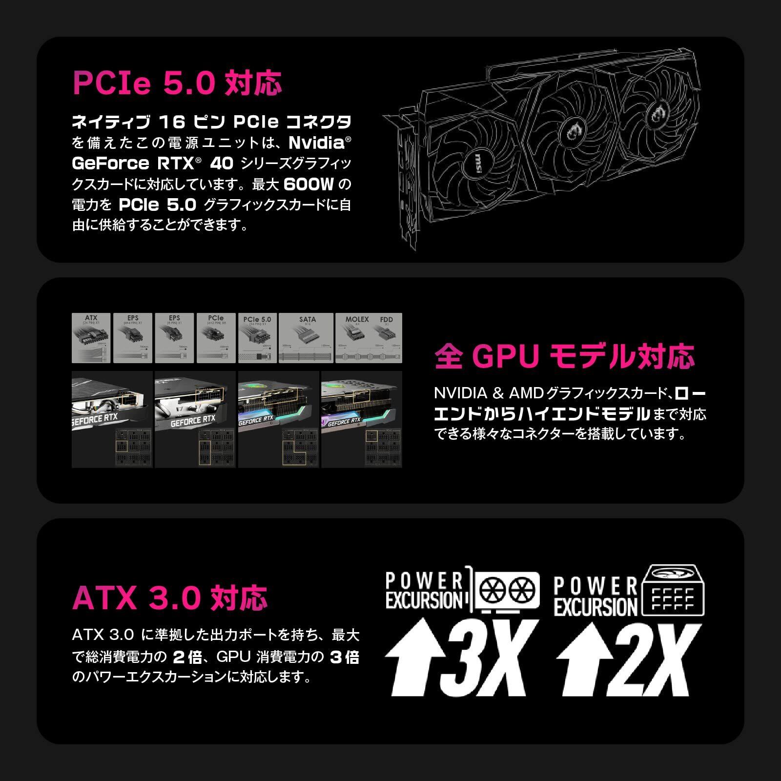 80PLUS GOLD認定取得。PCI Express 5.0に対応する、ハイエンドシステムに最適な高出力の電源ユニット