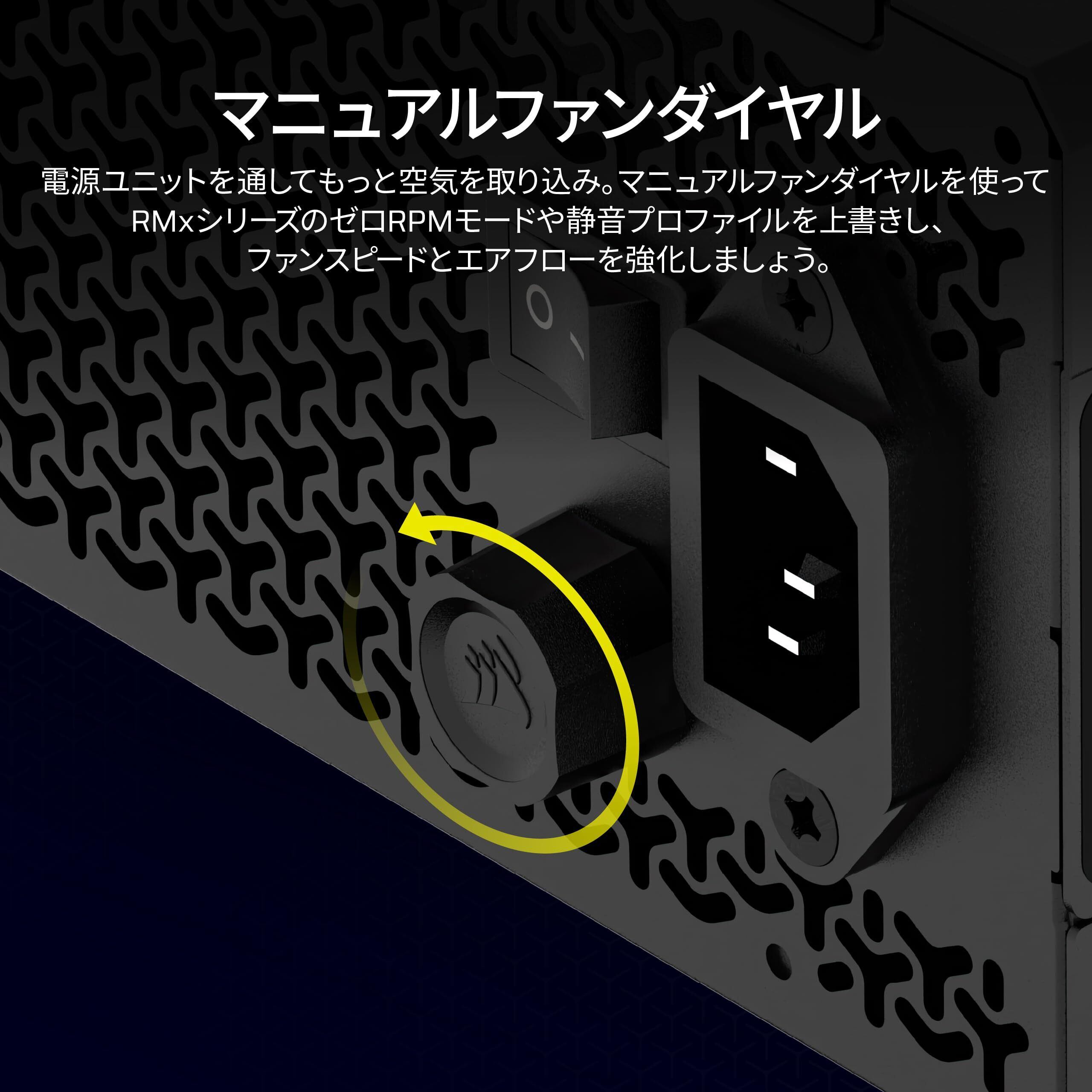 CORSAIR RM850xは、80 PLUS Gold認証を取得したATX電源ユニットです。850Wの大容量で高性能なPCをサポートします。余計なケーブルを外しておけるフルモジュラータイプなので、PC内のケーブルを減らしてすっきりさせられます。冷却ファンは140mmの大口径モデルを採用。負荷に応じて回転数を自動コントロールするほか、背面のノブを使った手動コントロールにも対応しています。また、低負荷時にはファンを停止するZERO RPMモードも搭載しています。 販売元、出荷元が「」のCorsair 製品に関しては全て正規品となっております。に関するお問い合わせ先については、外箱貼付の代理店シールをご確認ください 代理店シールが貼付されていない場合は、Corsair正規代理店株式会社アスクまでお問い合わせください。