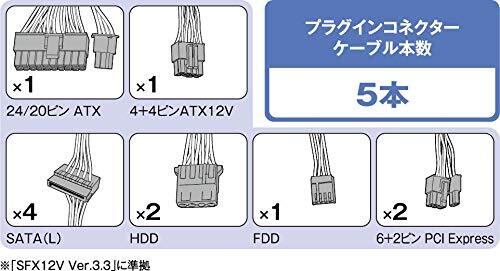 玄人志向 電源ユニット 600W SFX 電源 80 PLUS ゴールド PC電源 フルプラグイン フラットケーブル KRPW-SXP600W/90+
