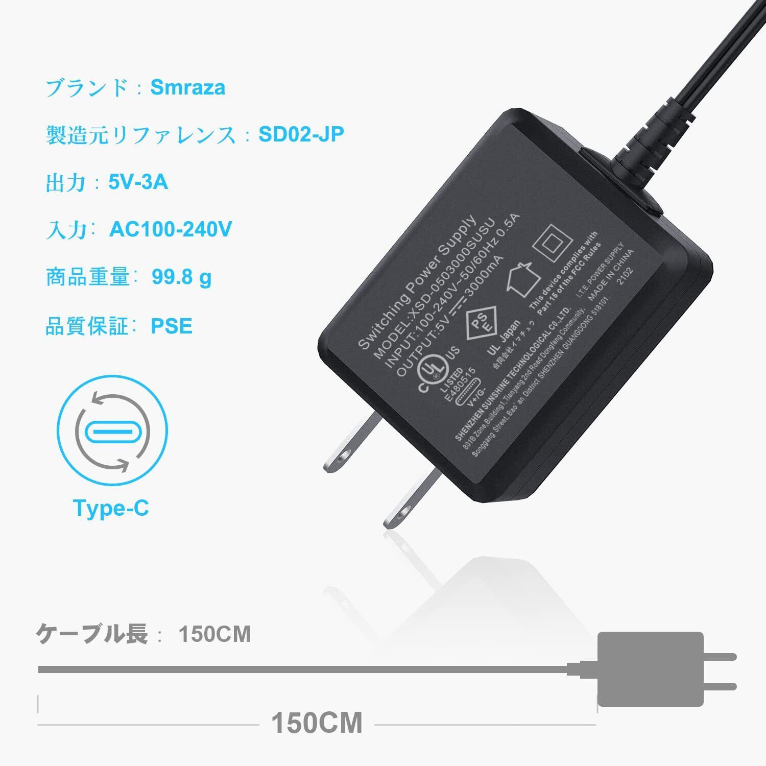 Smraza Raspberry Pi 4 USB-C (Type C)電源、5V 3A ラズベリーACアダプター RPi 4b Model B 1GB / 2GB / 4GB/ 8GB適用