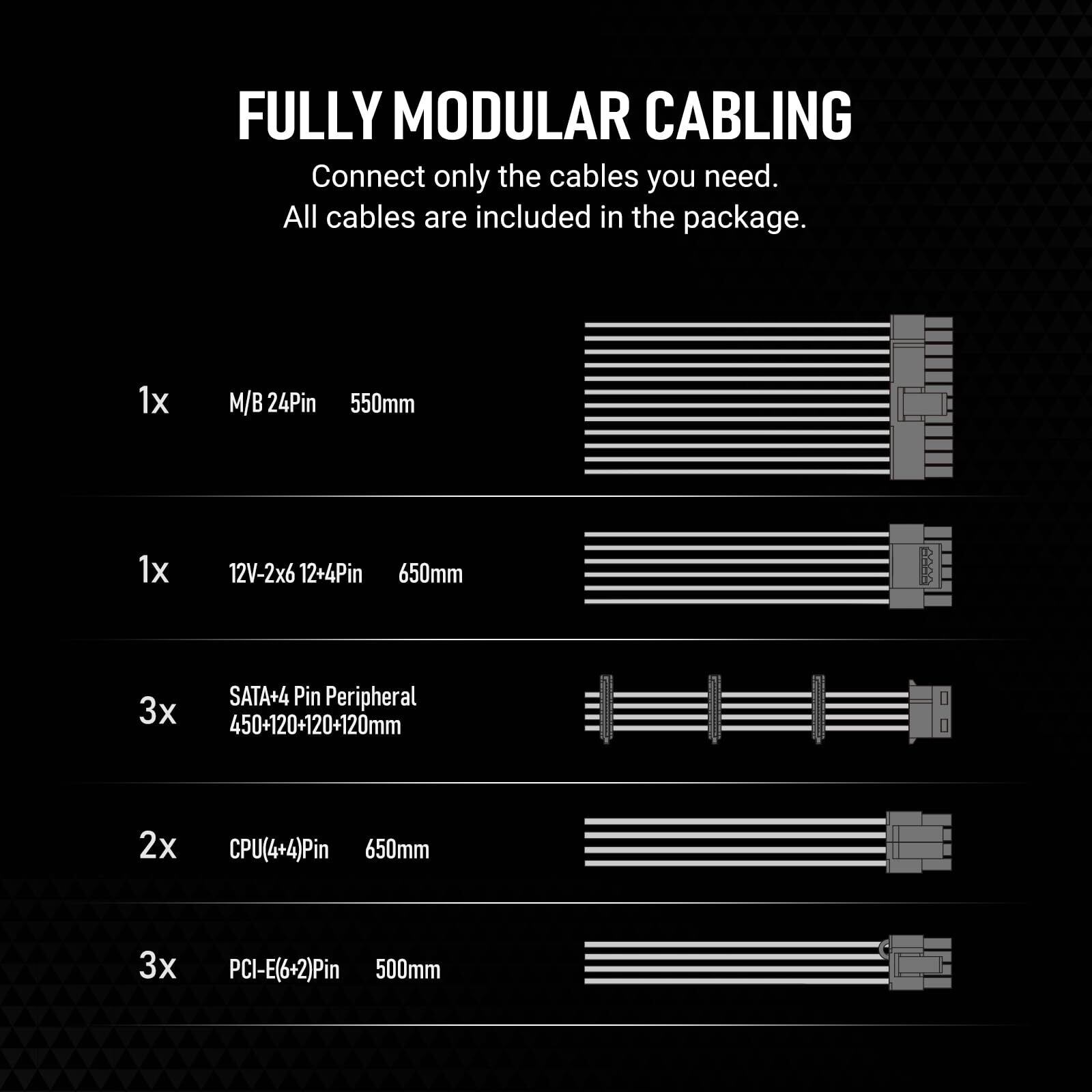 【フルモジュラー】フルモジュラー電源により、必要なケーブルのみを使用でき、システムの乱雑さを減らし、空気の流れを改善します。