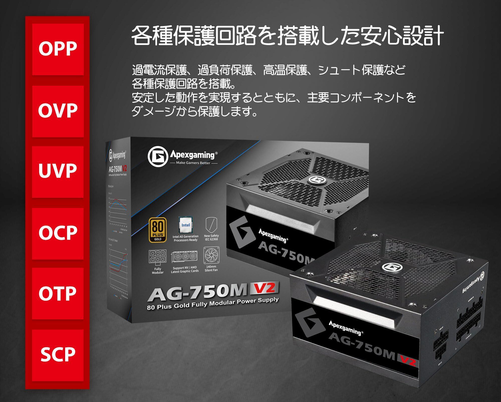 Apexgaming AGシリーズ 80 PLUS GOLD認証 750W フルプラグインATX電源 10年 PSU AG-750M-V2-JP PSEケーブル (750W)