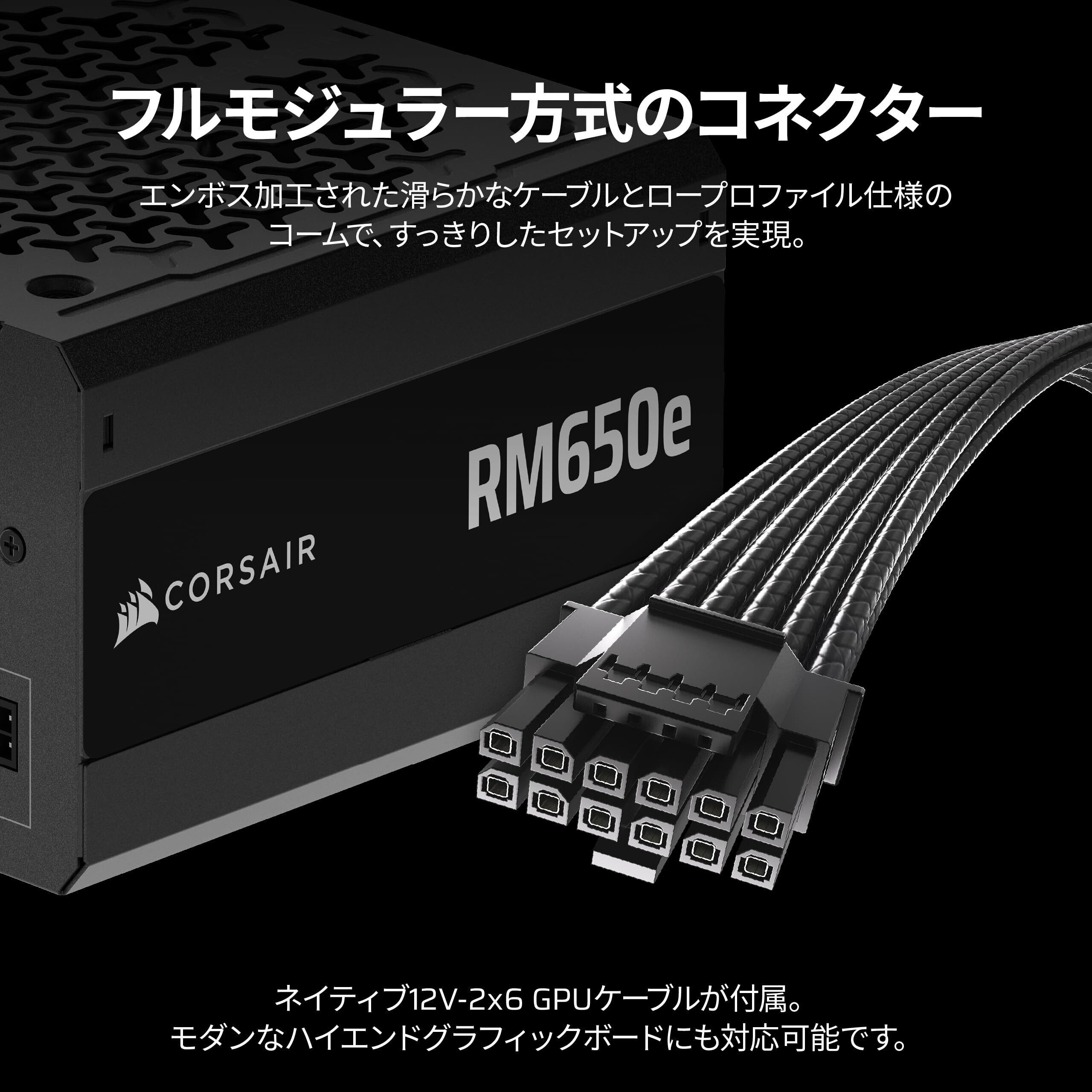 CORSAIR RM650e 2025モデル PC電源ユニット 650W PCIE 5.1 対応 80PLUS Gold認証 ATX 3.1 認証済 フルモジュラー 12V-2x6 ケーブル付属 CP-9020302-JP
