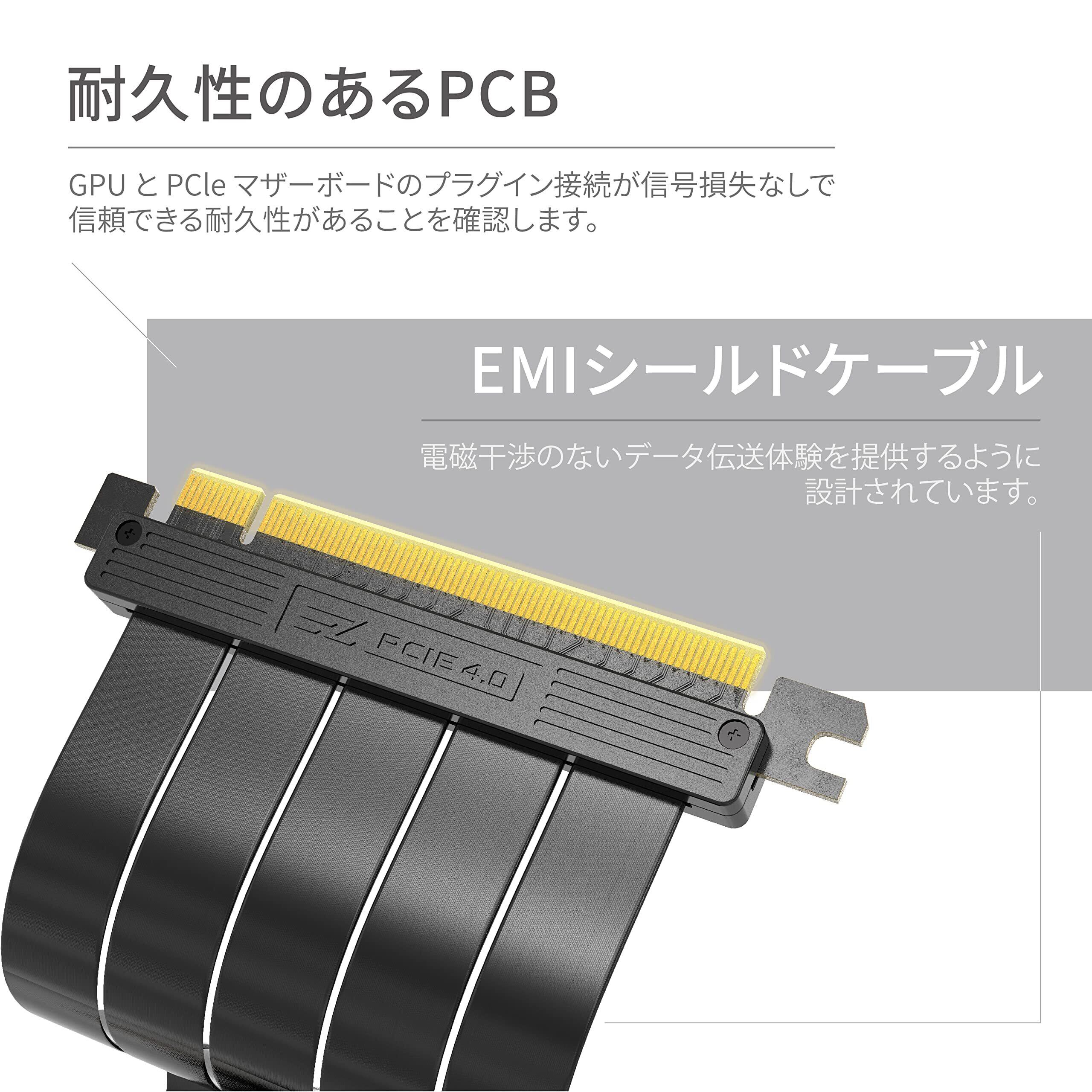 EZDIY-FAB PCIe 4.0 X16ライザーケーブル 高速シールド垂直GPUマウント用 PCI-E Gen4対応 延長ライザーカード 直角コネクタ - 20cm 90度