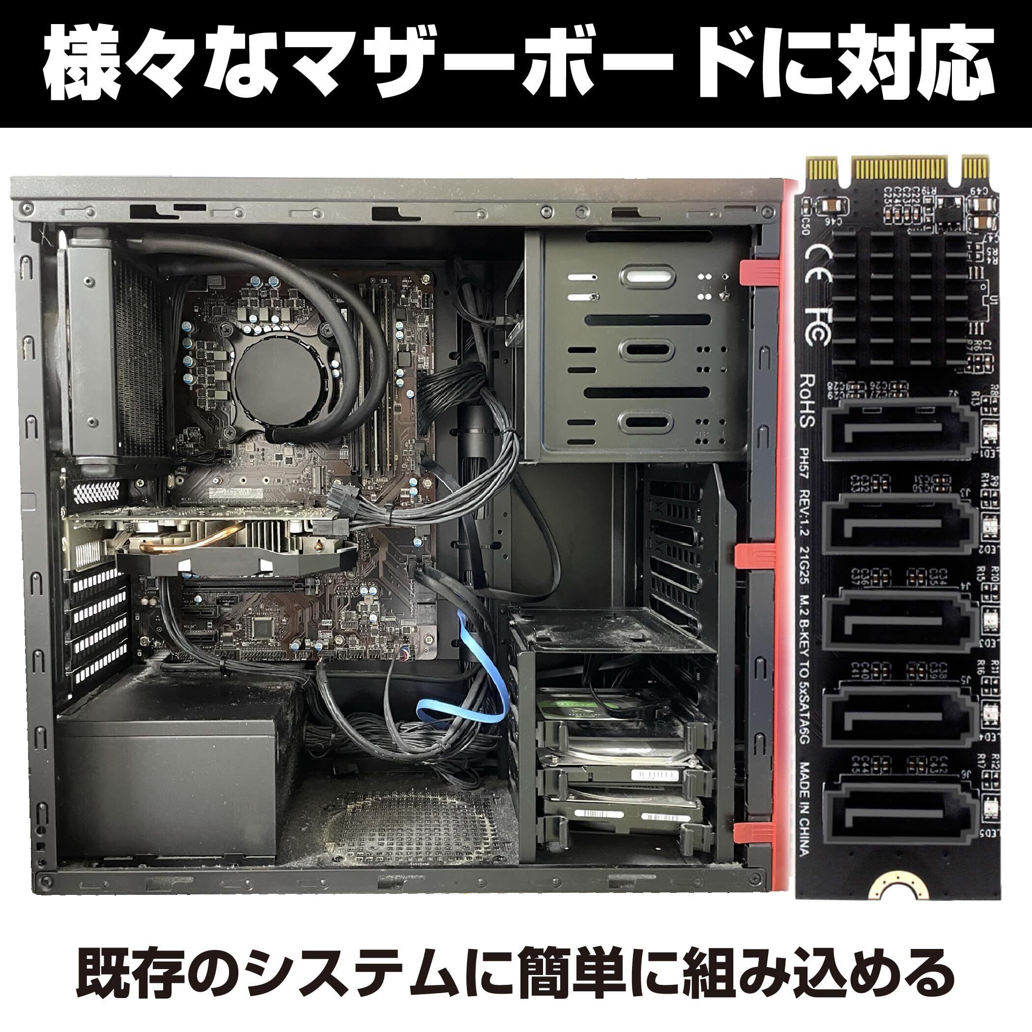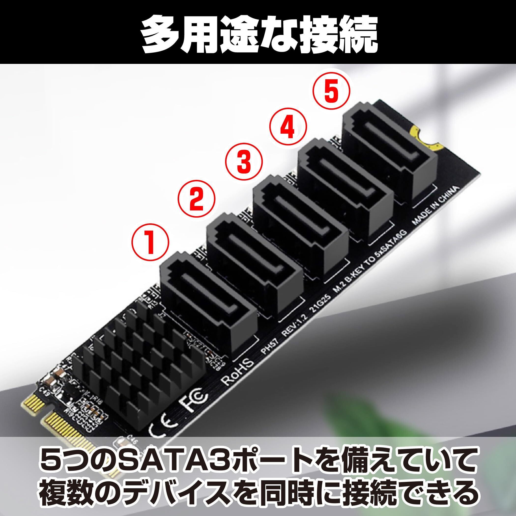 多用途な接続:5つのSATA3ポートを備えており、複数のデバイスを同時に接続できます。これにより、ストレージの拡張や複数のハードドライブの管理が容易になります。家庭用から業務用まで、幅広い用途に対応します。例えば、NASやサーバーの構築にも役立ちます。