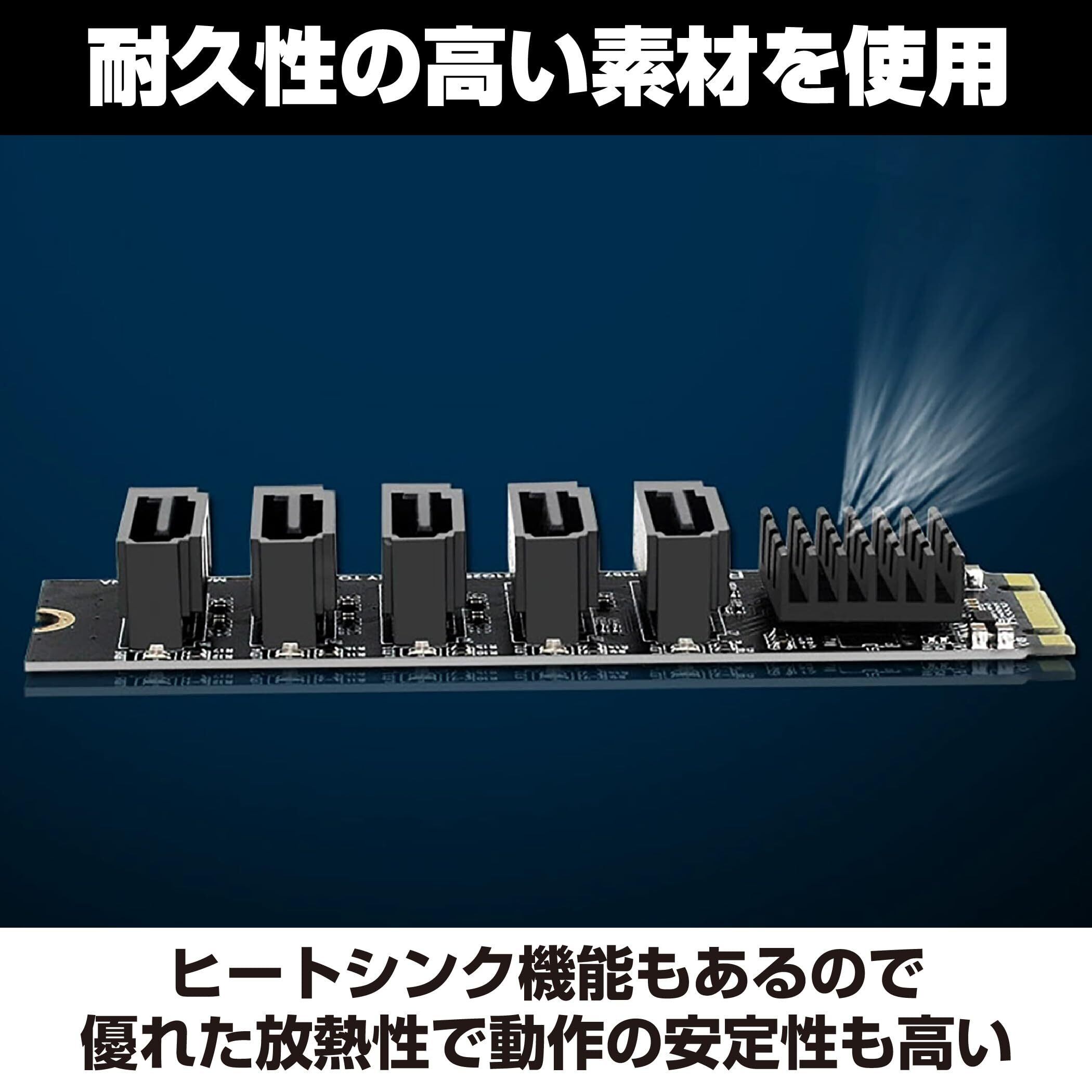 高速データ転送:5台のSATAデバイスの高速転送を実現するSATA3、6Gbps拡張カードです。大容量データの転送やバックアップが迅速かつ効率的に行えます。特に動画編集やデータ解析など大量のデータを扱う作業に最適です。