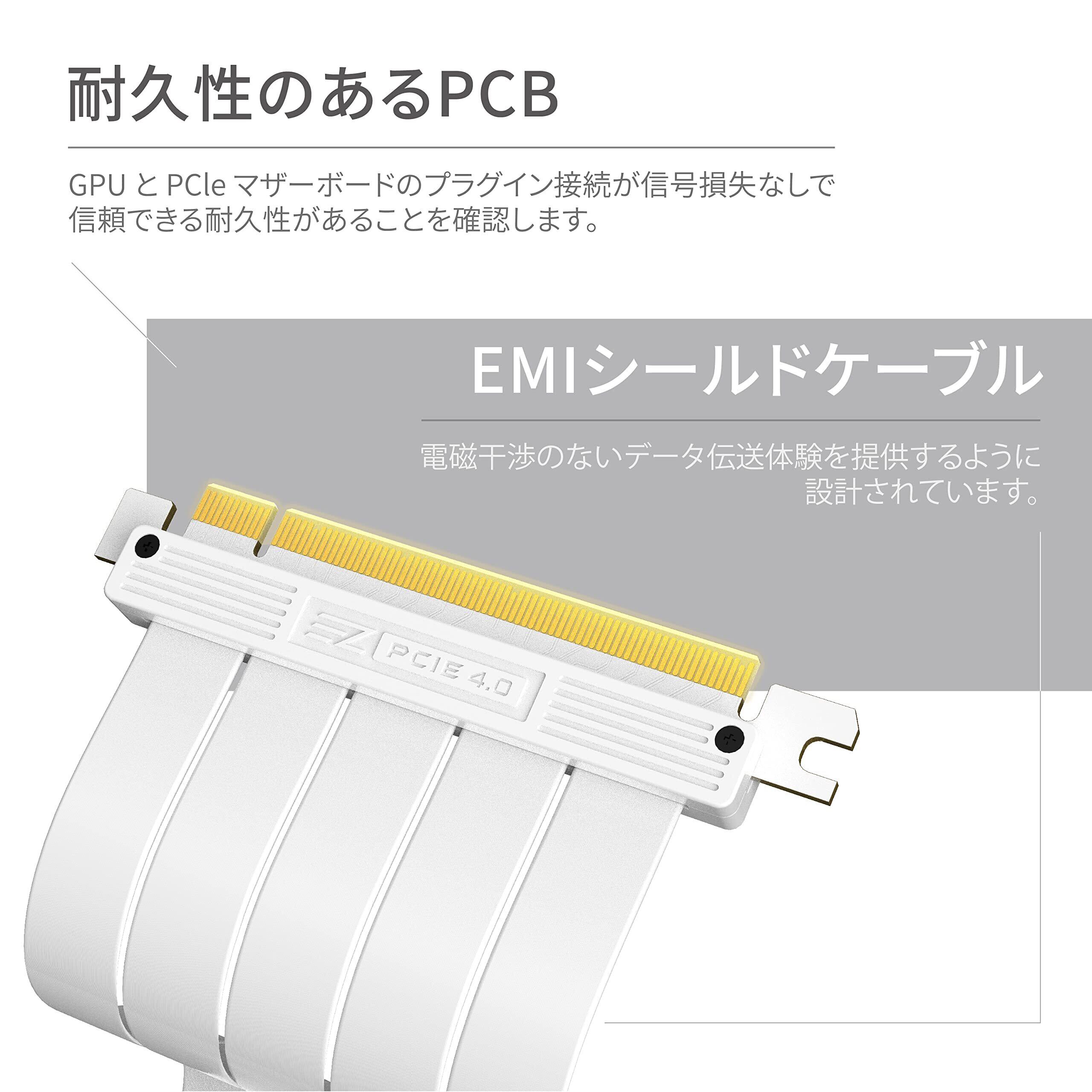 EZDIY-FAB PCIe 4.0 X16ライザーケーブル 高速シールド垂直GPUマウント用 PCI-E Gen4対応 延長ライザーカード 直角コネクタ 白 - 20cm 90度