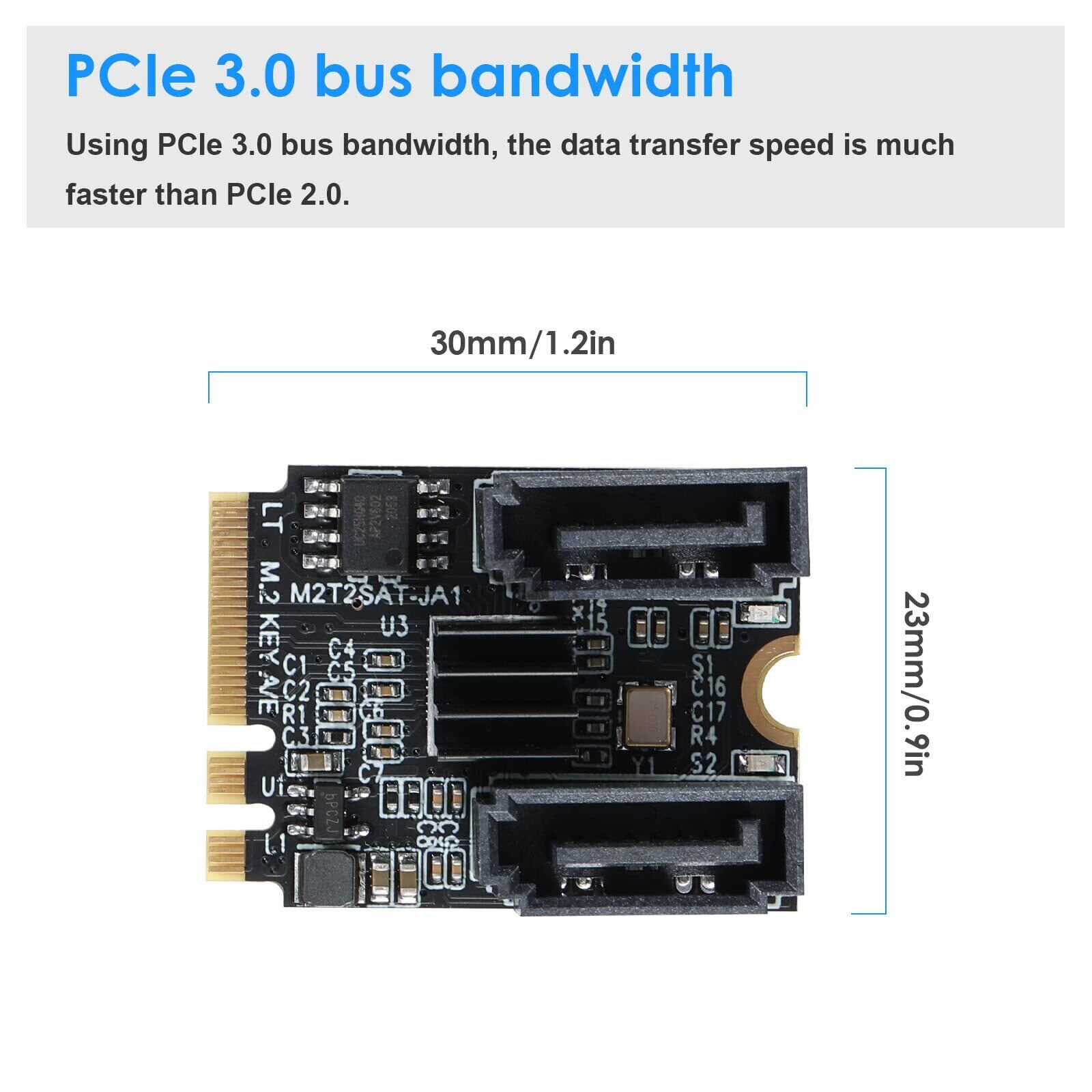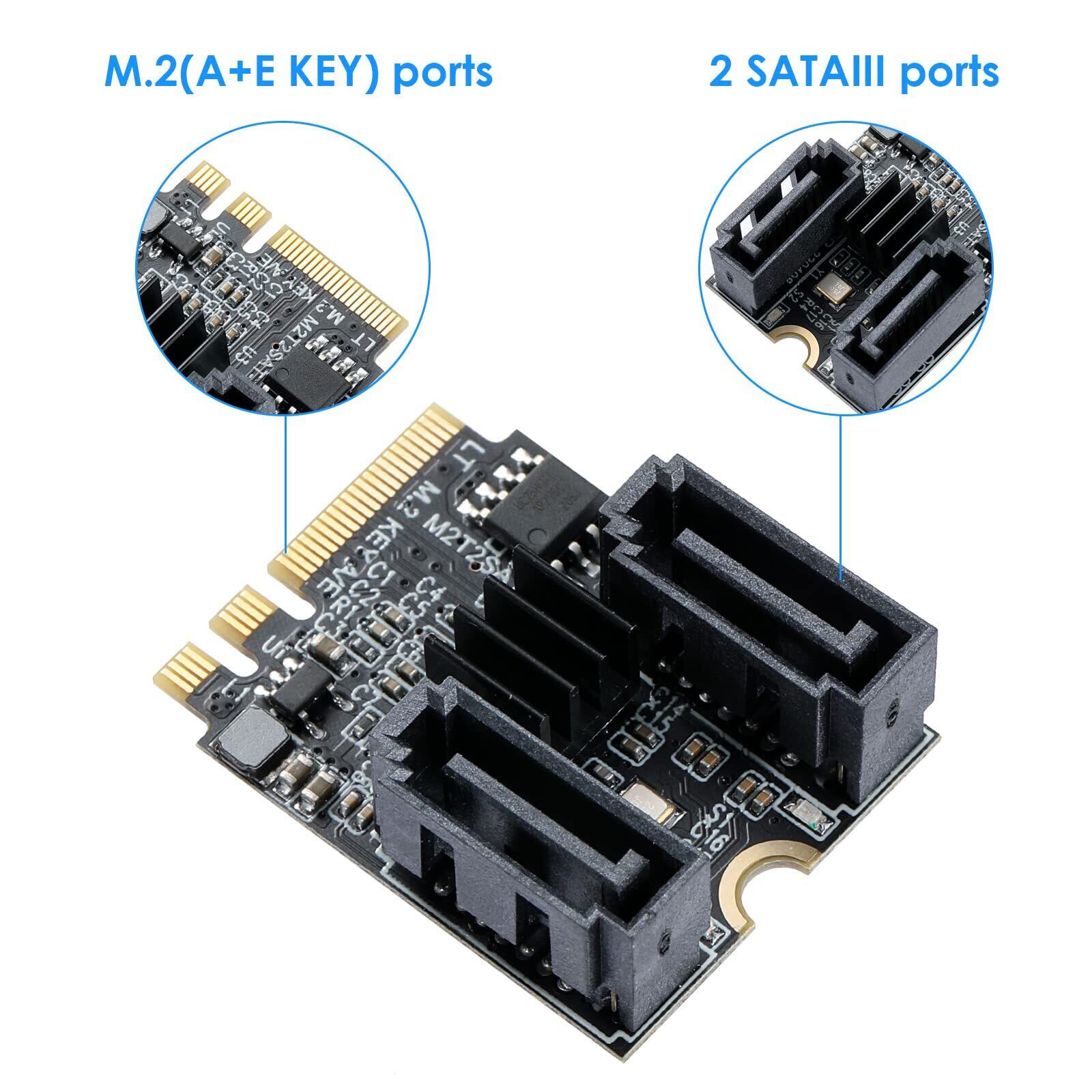 M.2キーA+EからデュアルSATAアダプタカードへ-Windows 10/8/7およびLinux用の2ポートSATA(6 Gbps)拡張-2本のSATAケーブルとM.2ネジを含む-PC、ノートパソコン、ミニPC用のNVMe/PCie SSDからSATAコンバータ
