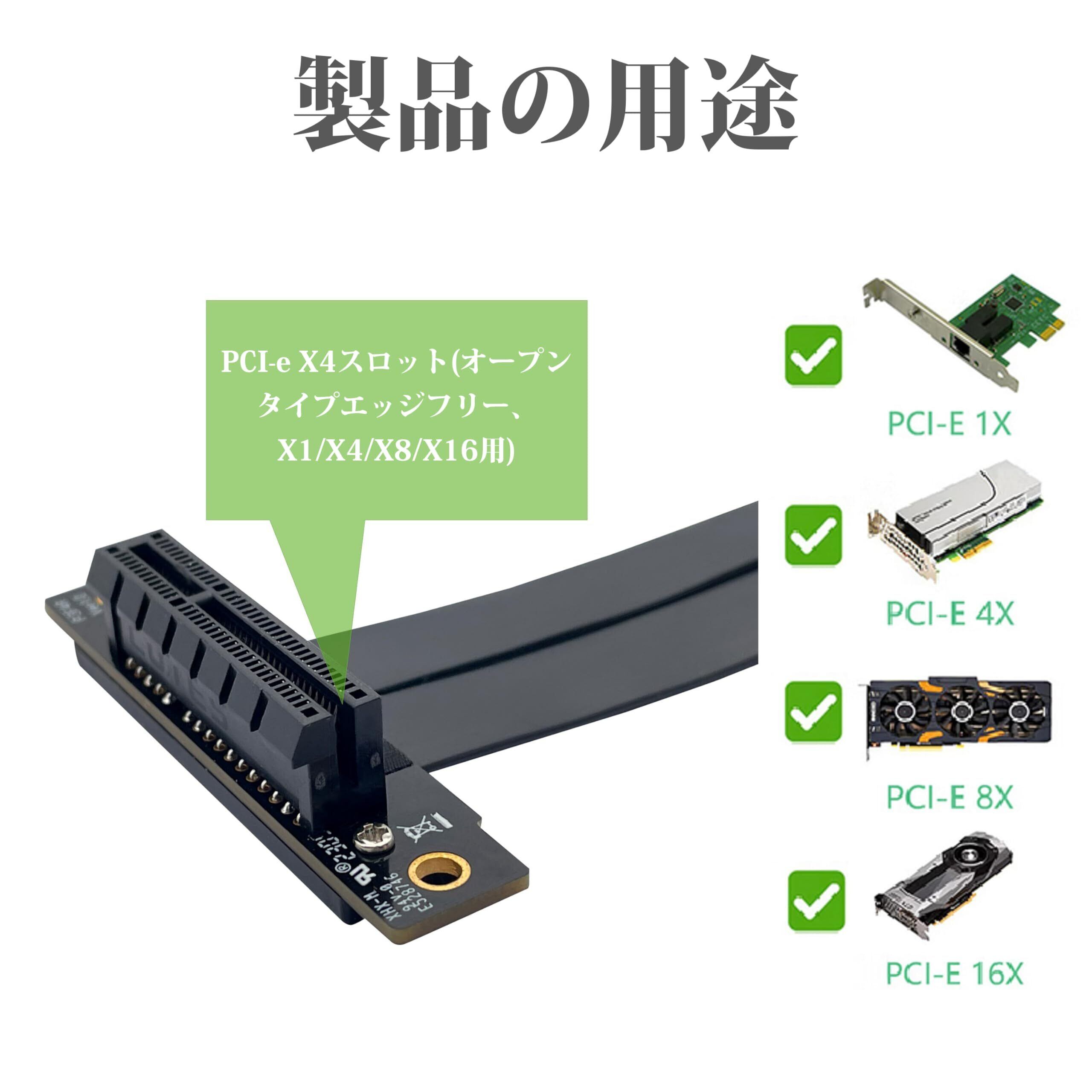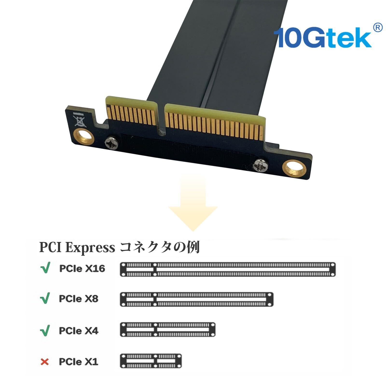 10Gtek PCIE 3.0 延長ケーブル 4X to 4X オス-メス 90° to 90° エクステンダーライザーケーブル 干渉防止EMI シールド 20cm(全長24 cm)