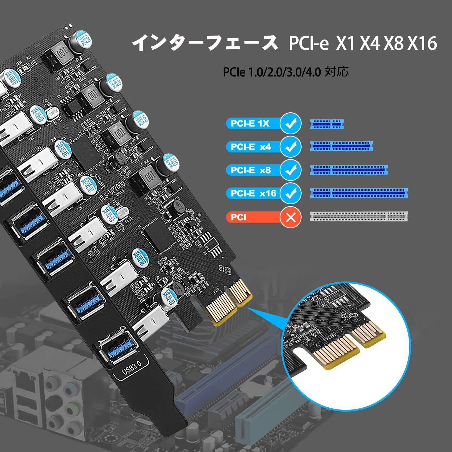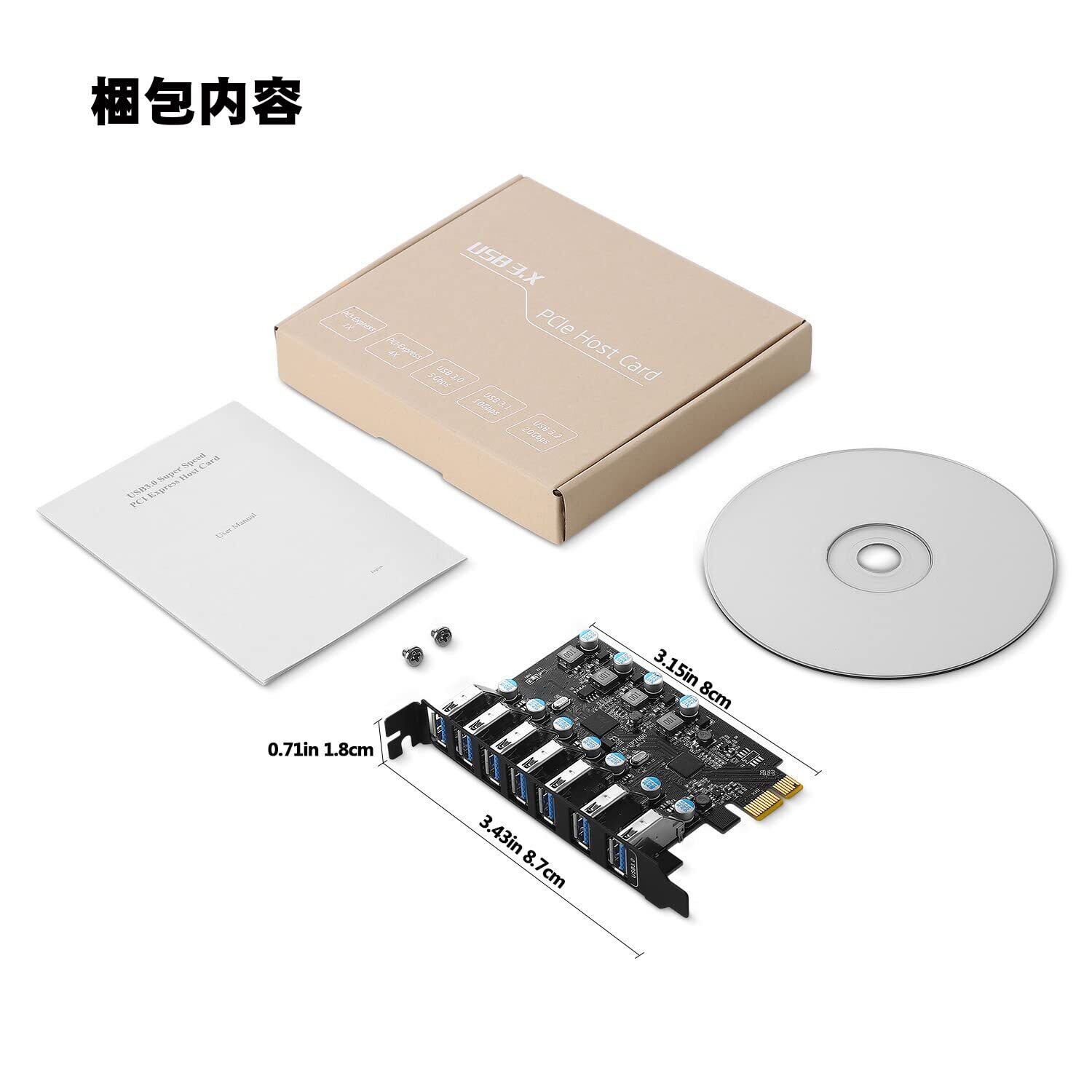 IDEAPRO USB3.0増設ボード 7ポート USB 3.0増設 PCI Express インターフェースカード 外部給電不要 5Gbps高速伝送 拡張カード PCIE x16 x8 x4 x1対応 Windows XP/Vista 7/8/8.1 Mac OS対応