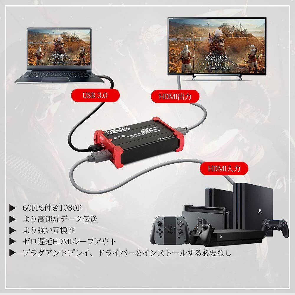 Mirabox 4K キャプチャーボード USB 3.0ビデオゲームキャプチャ1080p @ 60fps PS4 Xbox Wii UおよびPS3をHD Loopoutでサポート、プラグアンドプレイサポートHDMIゲームライブ録画/HDMIビデオ録画/ライブストリーミングキャプチャデバイス