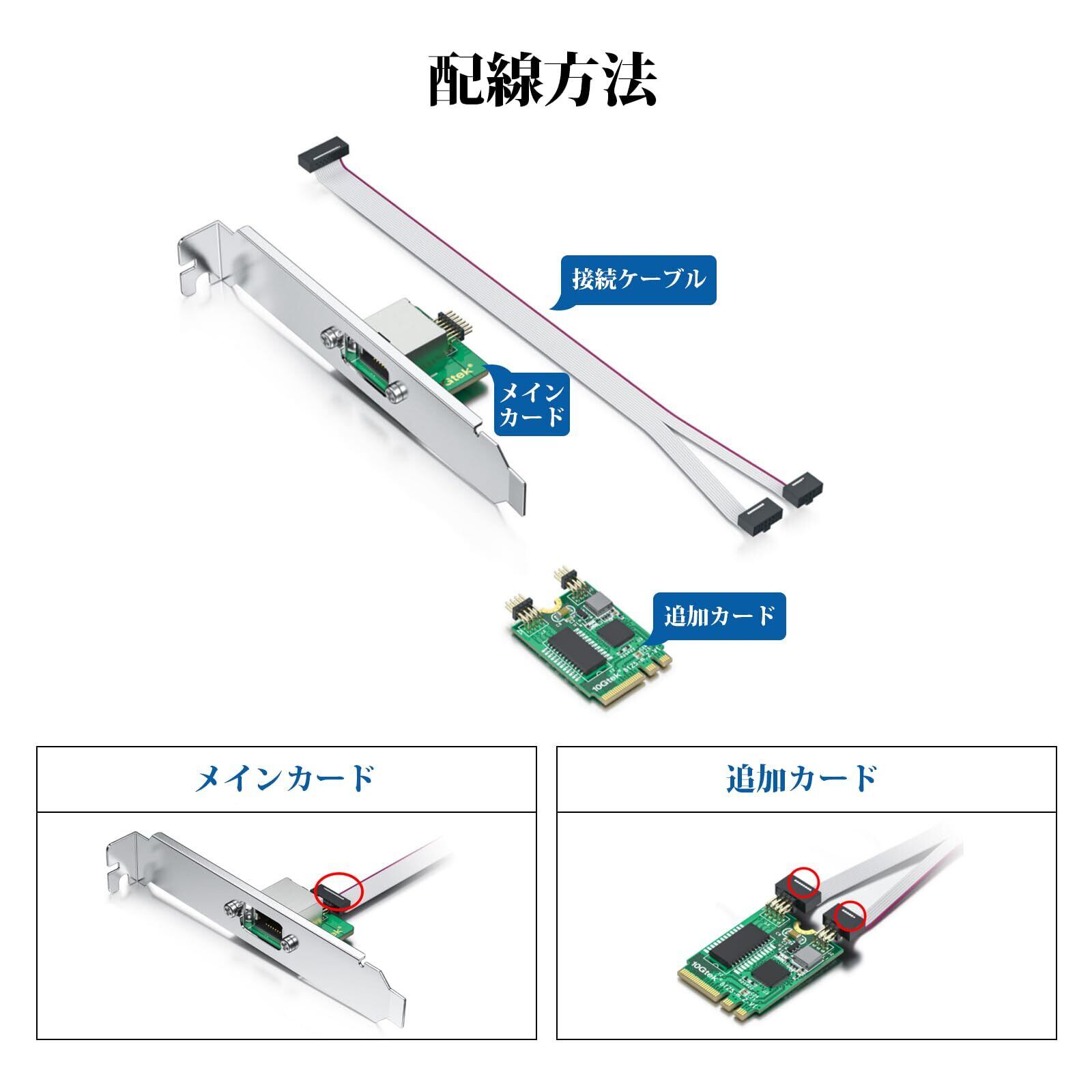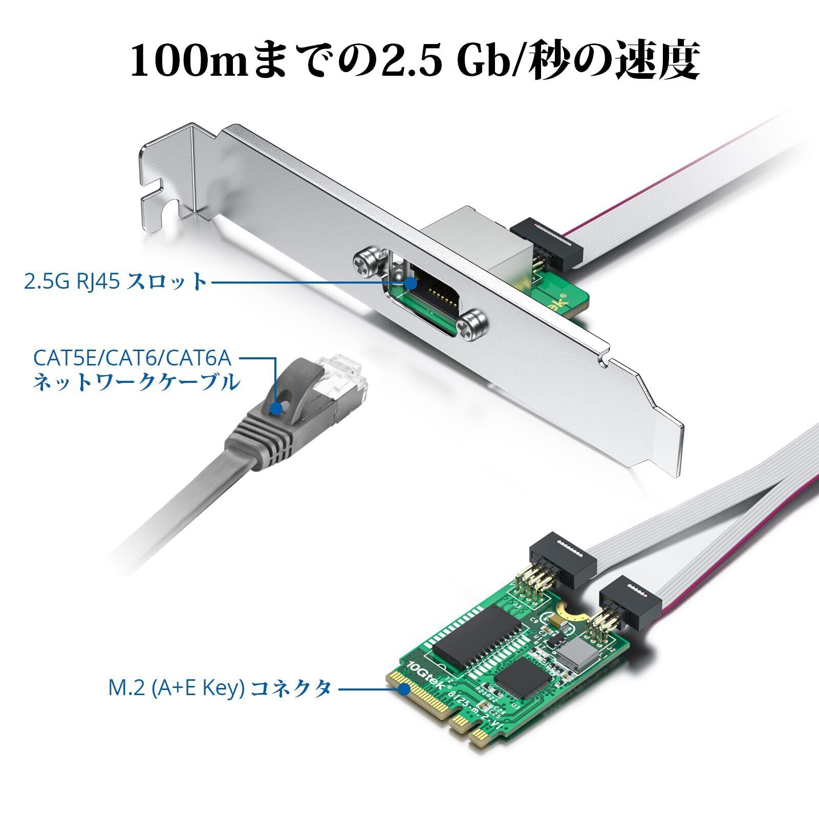 10Gtek M.2 A+E キー 2.5G ギガビット イーサネット ネットワーク カード、ケーブル長 18 cm