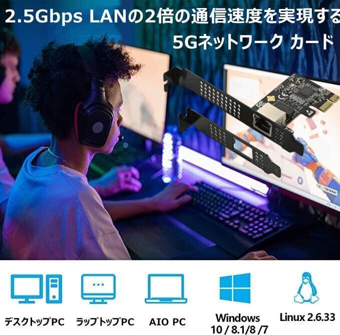 5Gbps PCIe LANカード RTL8126チップ 5Gネットワークカード 高速データ転送 NIC Windows/Linux/Mac OS対応