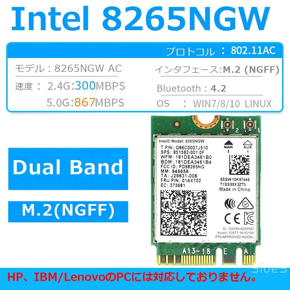Intel Dual Band Wireless-AC 8265 8265NGW 無線LAN M.2 2230 Wifiカード ワイヤレスカード Bluetooth 4.2 デュアルバンド 867Mbps 2.4GHz/5GHz ノートPC デスクトップ対応 Windows/Linux