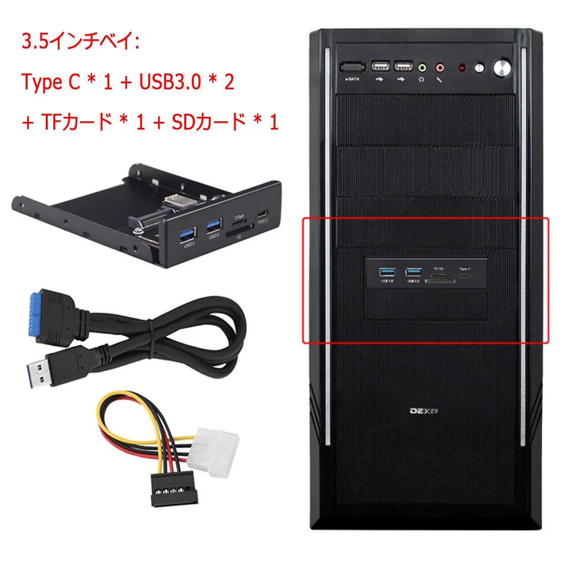 3.5インチフロントパネル 多機能 Type C / USB3.0 / TF SD/デスクトップフロッピードライブのUSB3.0外部インターフェイスを拡張して 【多機能 Type C * 1 + USB3.0 * 2 + TFカード * 1 + SDカード * 1】内蔵型メモリカードリーダーPCフロッピードライブ用