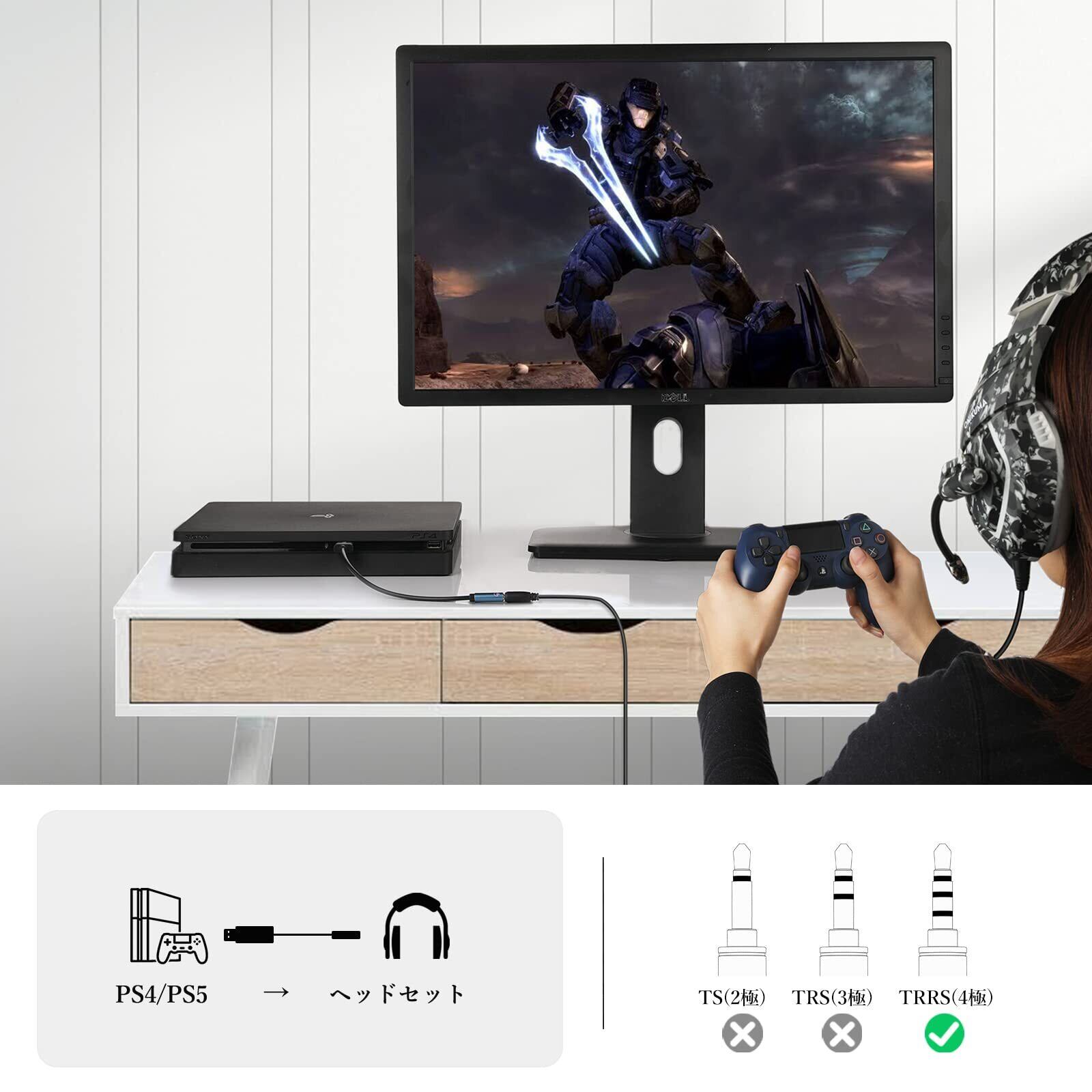 4極 usb 変換:4極TRRSのマイク/マイク付きイヤホンをPC/PS4/PS5等のUSBポートに接続できるオーディオ変換ケーブルです。ボイスチャットや通話に活用できます。(Xperia/iPhoneの純正イヤホン / SHUREイヤホン / Boseイヤホンに非対応。TSとTRSのマイクに非対応)