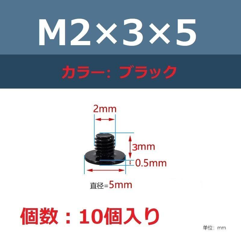 Laptopdiyparts M.2/NGFF SSD、WiFi、無線LANカードなど用 固定ネジ 取付ねじ M2×3 ネジ頭5mm径 (ブラック, 10個)