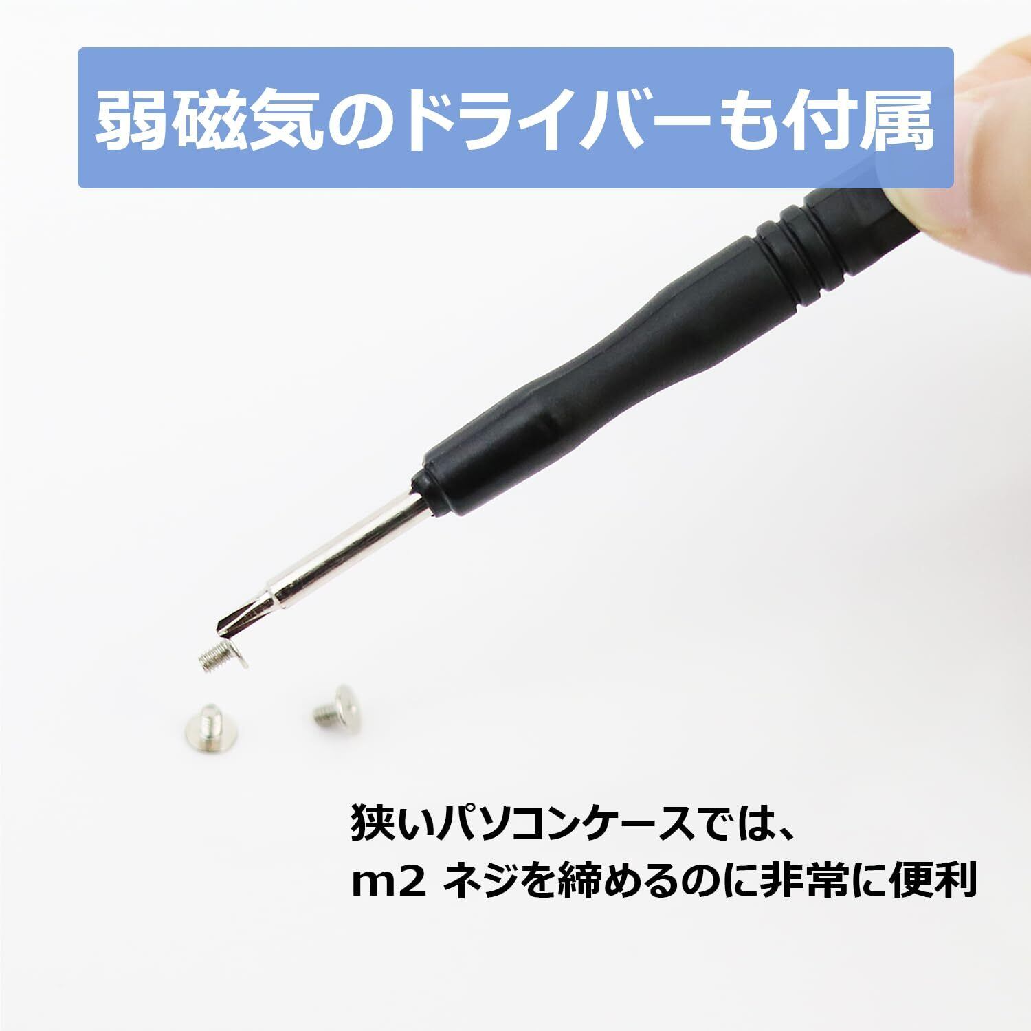 弱磁気のドライバーも付属します、狭いパソコンケースで、m2 ネジを設置するのに非常に便利です。